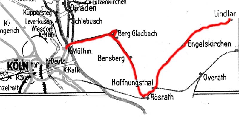 In Bildmitte mündete von rechts die Strecke aus Richtung Bergisch Gladbach ein.