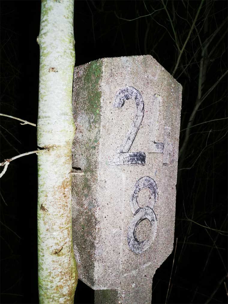 km 3,6 (Stein und Tafel) am Abzw Köln-Müngersdorf - Detail