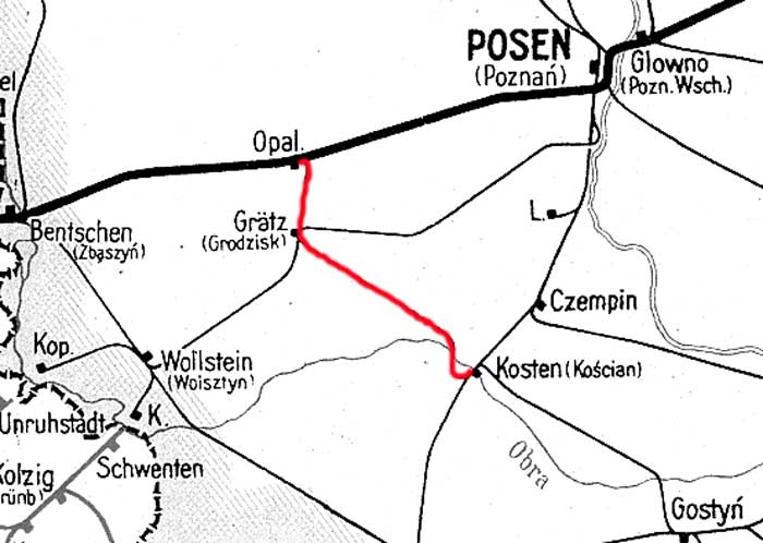 Kościan (Kosten) 0,0 - Grodzisk Wielkopolski (Grätz) 30,226 - Opalenica (Oppenbach) 39,942