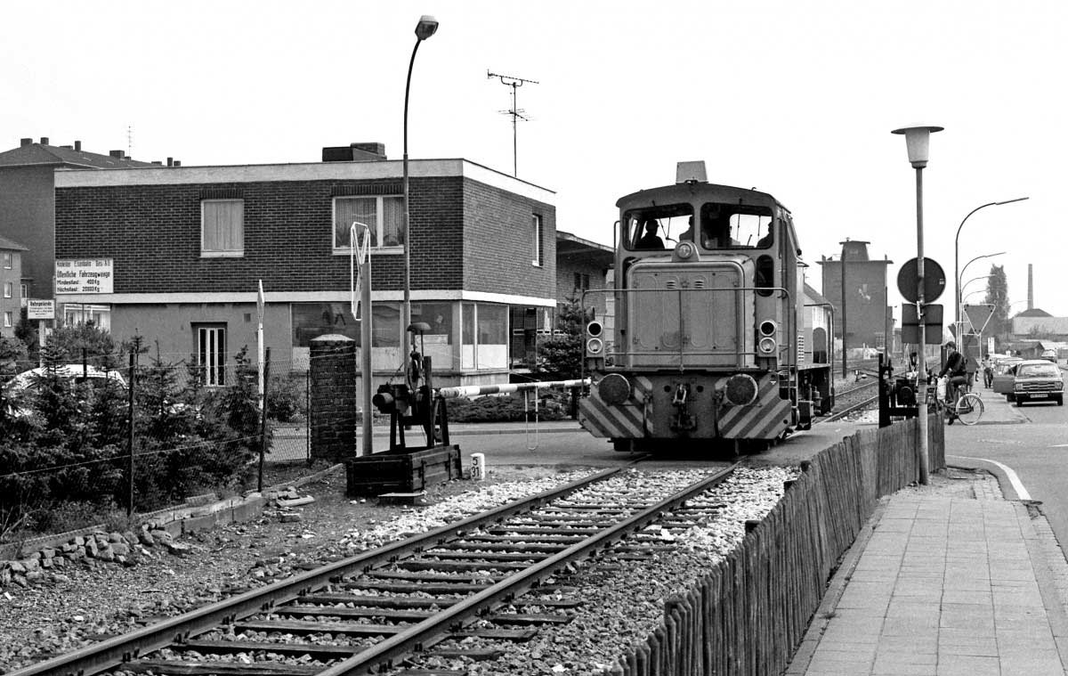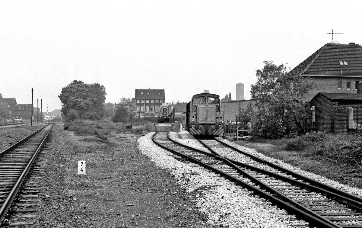 km 7,4 bei Hüls - Lok V 6 Blick Richtung Moers Foto: Dieter Riehemann, 16.05.1978