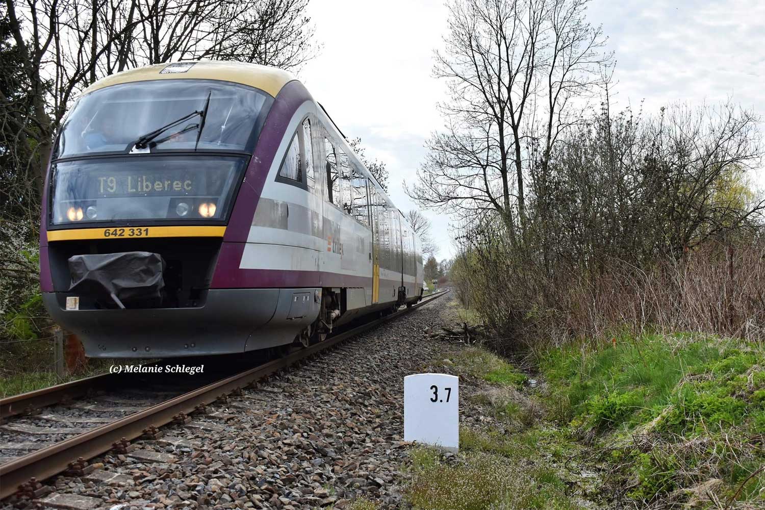 Grenze | 11,457 | km 9,688 der Strecke Mittelherwigsdorf (Sachs) 0,0 - Staatsgrenze Deutschland/Tschechien 9,688 - Varnsdorf 10,098 - Staatsgrenze Tschechien/Deutschland 13,705 - Eibau 23,45 (MWE) |