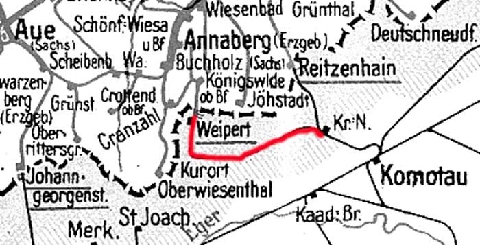Křimov (Krima) 0,0 - Vejprty (Weipert) 34,808 - Grenze 35,391