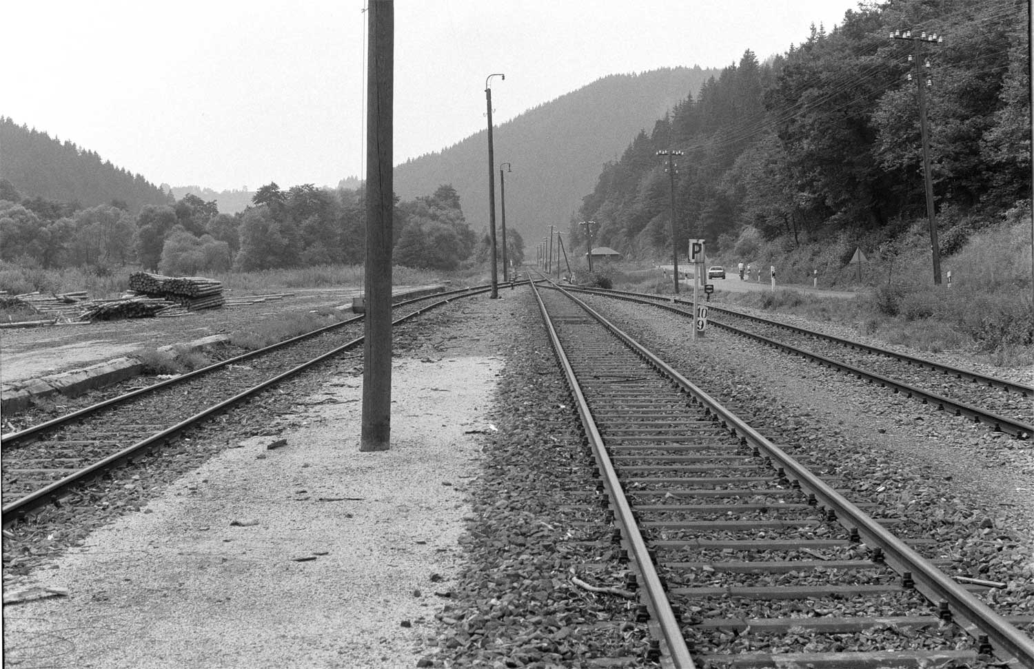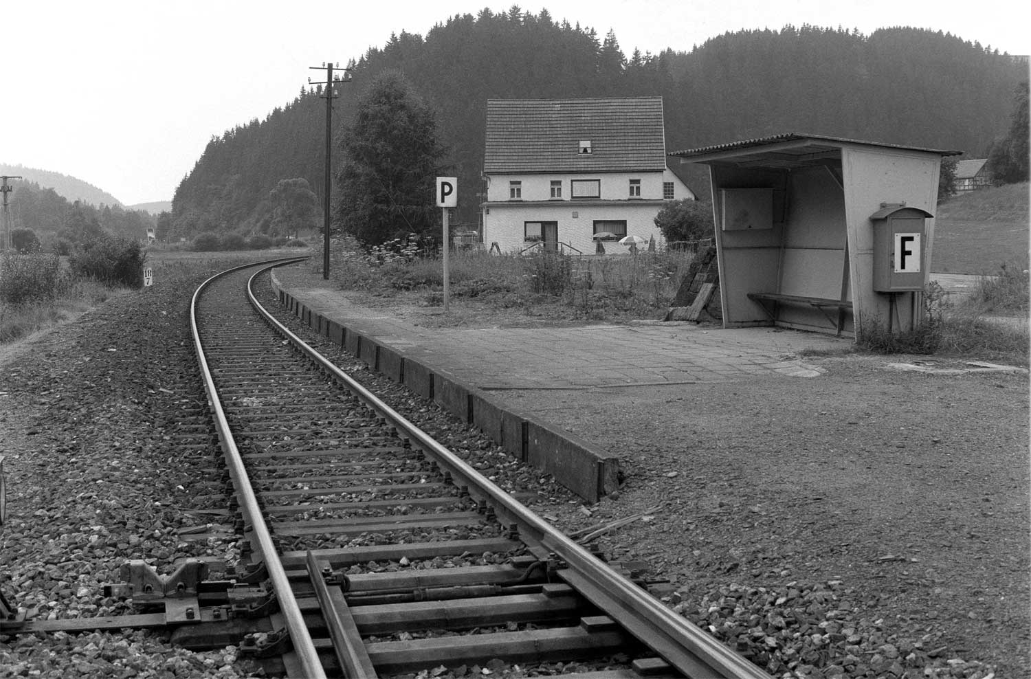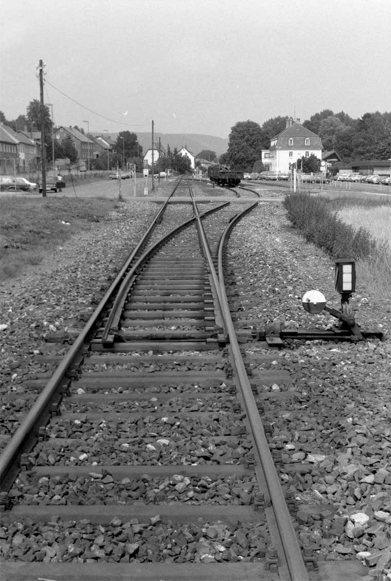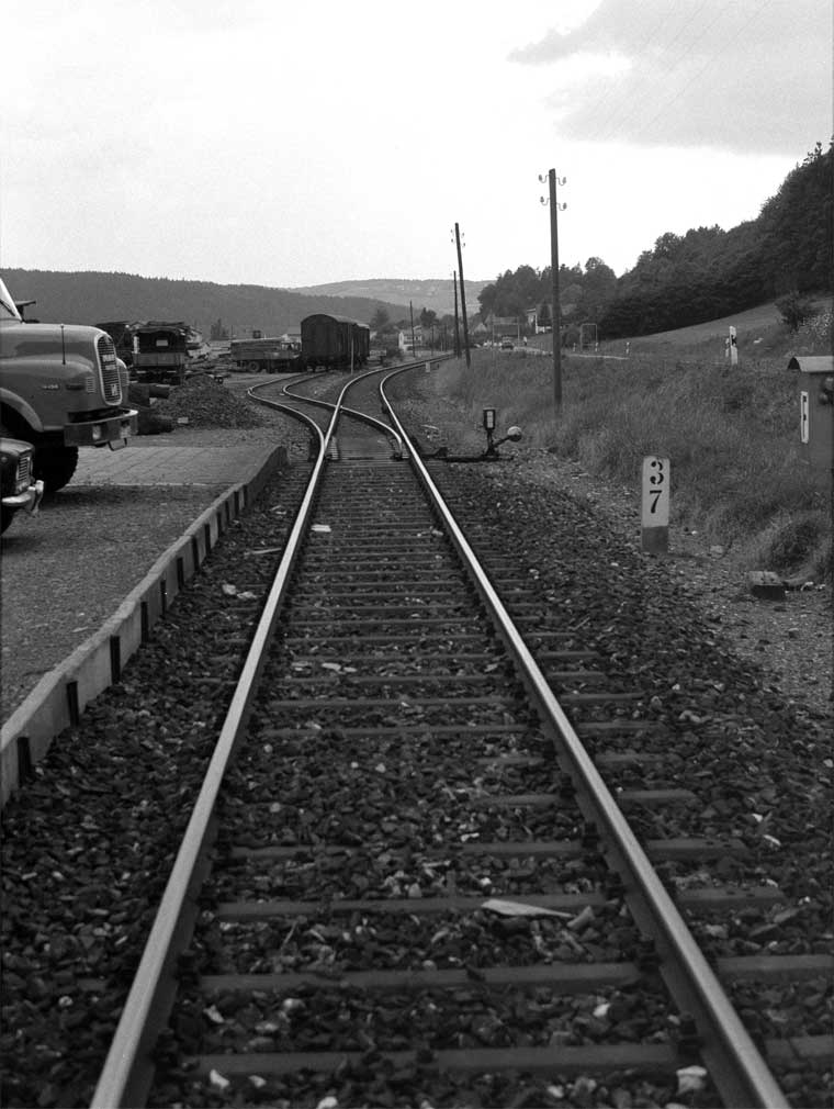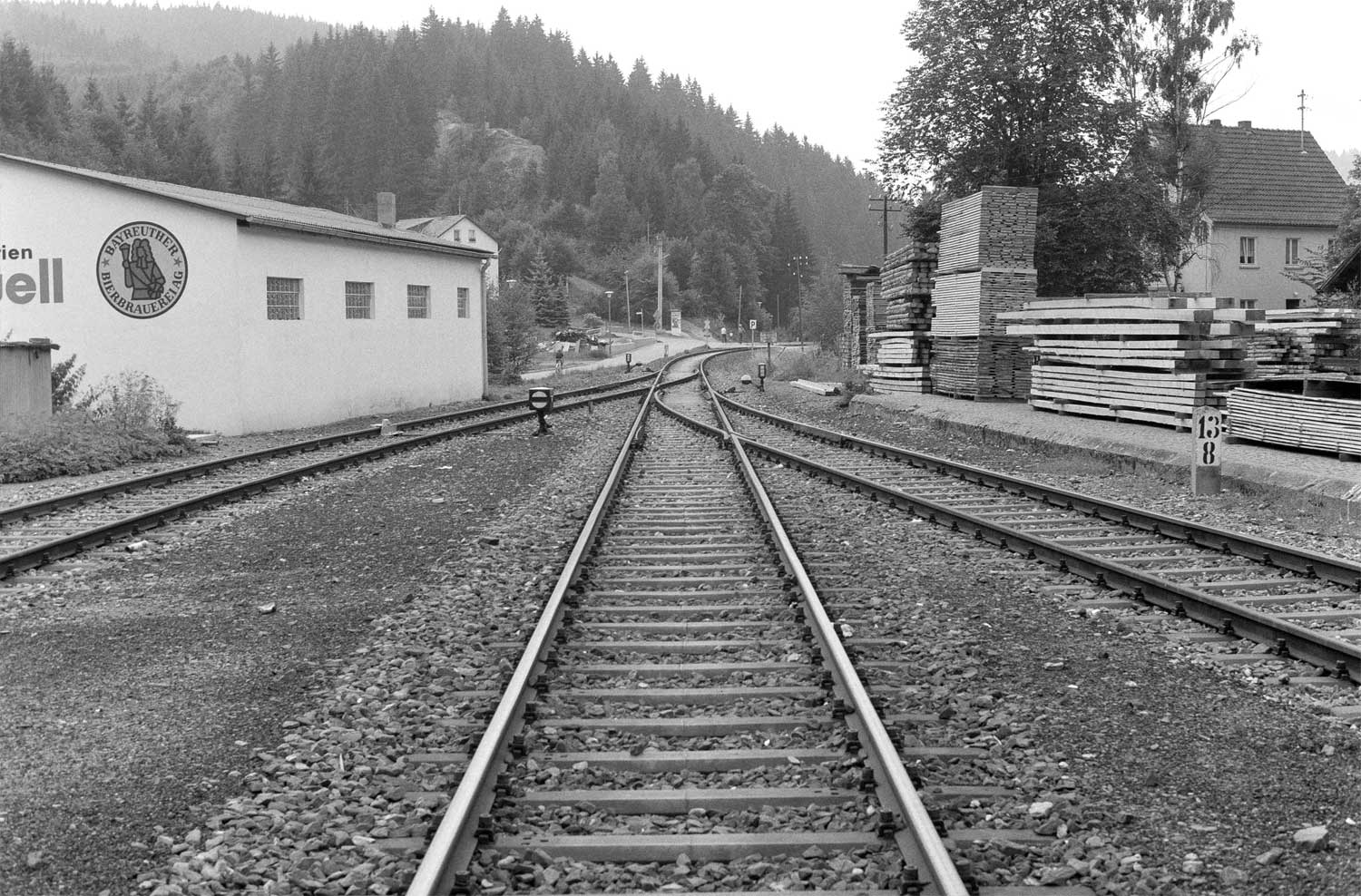 km 24,8 in Nordhalben - rechts der Lokschuppen - Blick Richtung Streckenende