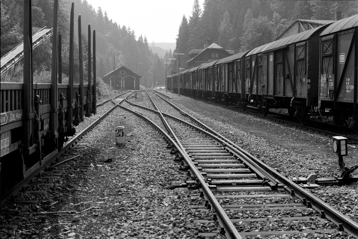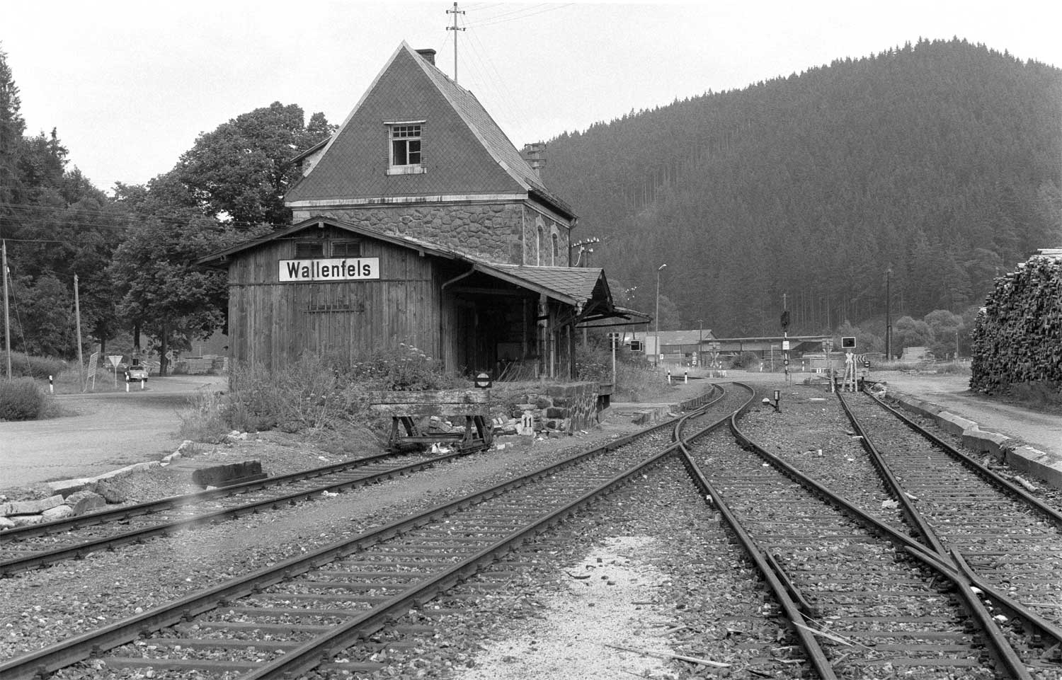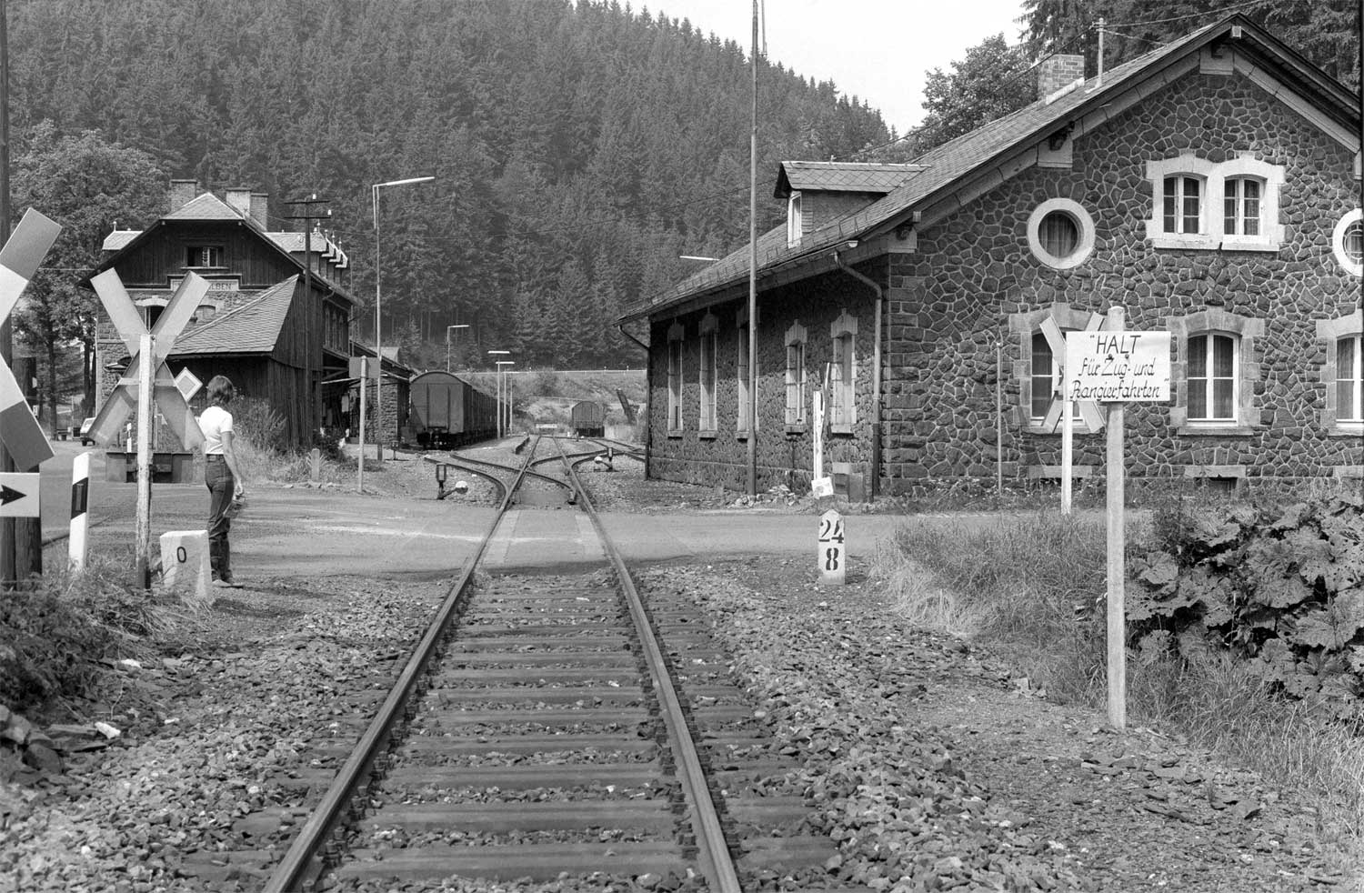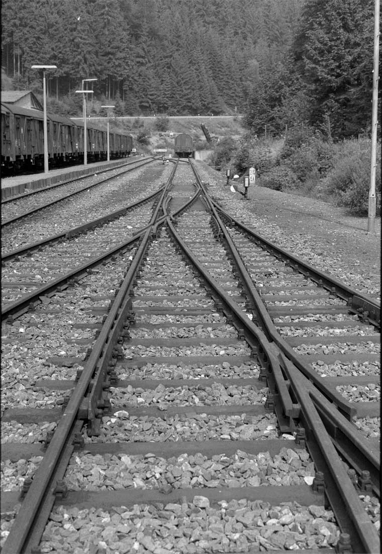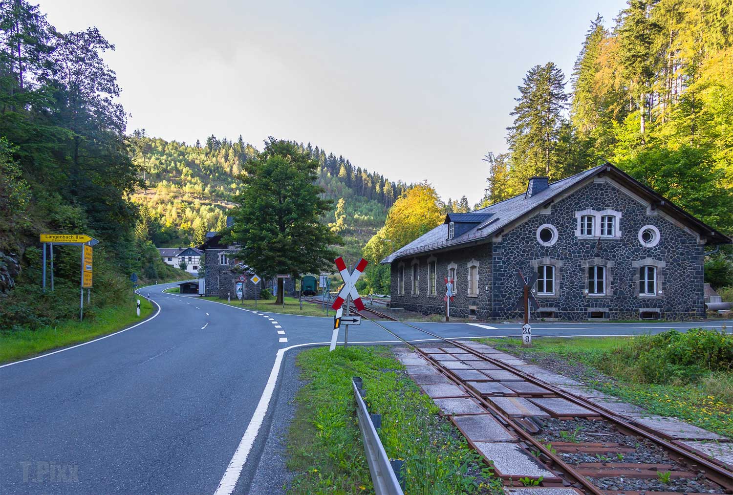 km 24,8 in Nordhalben - rechts der Lokschuppen - Blick Richtung Streckenende