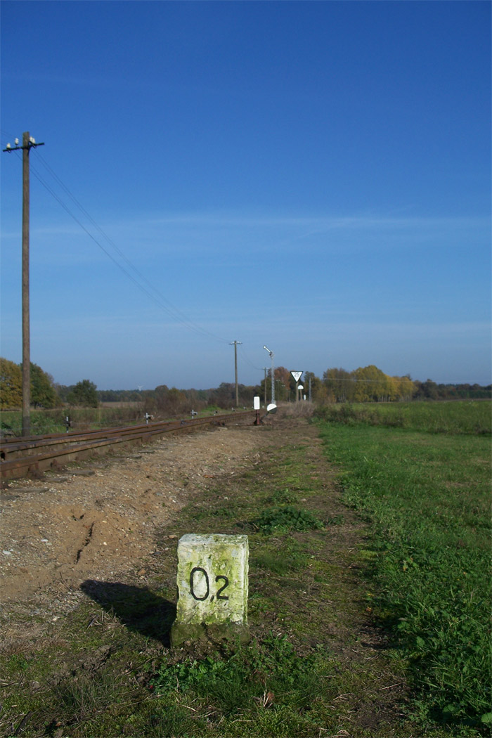 km 41,81 der Strecke Neustadt (Dosse) 0,0 - Pritzwalk 41,81 - Meyenburg 61,46 - ehemalige Grenze Preußen/Mecklenburg (jetzt Bezirk Potsdam/Bezirk Schwerin) 63,536 = [km 0,0 - Karow (Meckl) 24,60 - Güstrow 59,80] (siehe auch Tabelle 4, Ziffer 7) | ||