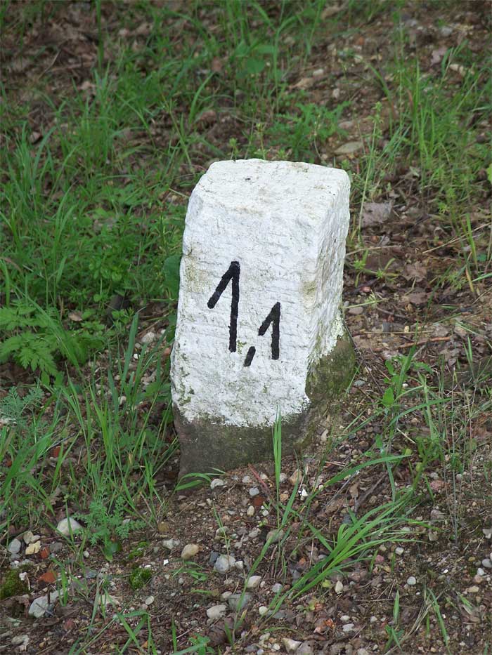 Die Bilder mit den Hektometersteinen km 1,1 und km 8,3 belegen aber, dass die Kilometrierung wohl doch den Tabellen von 1967 entspricht.