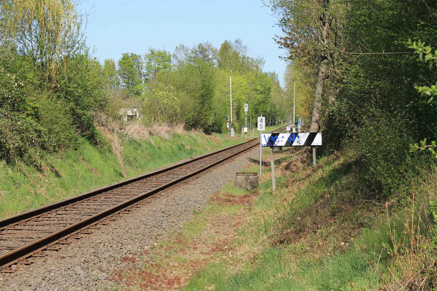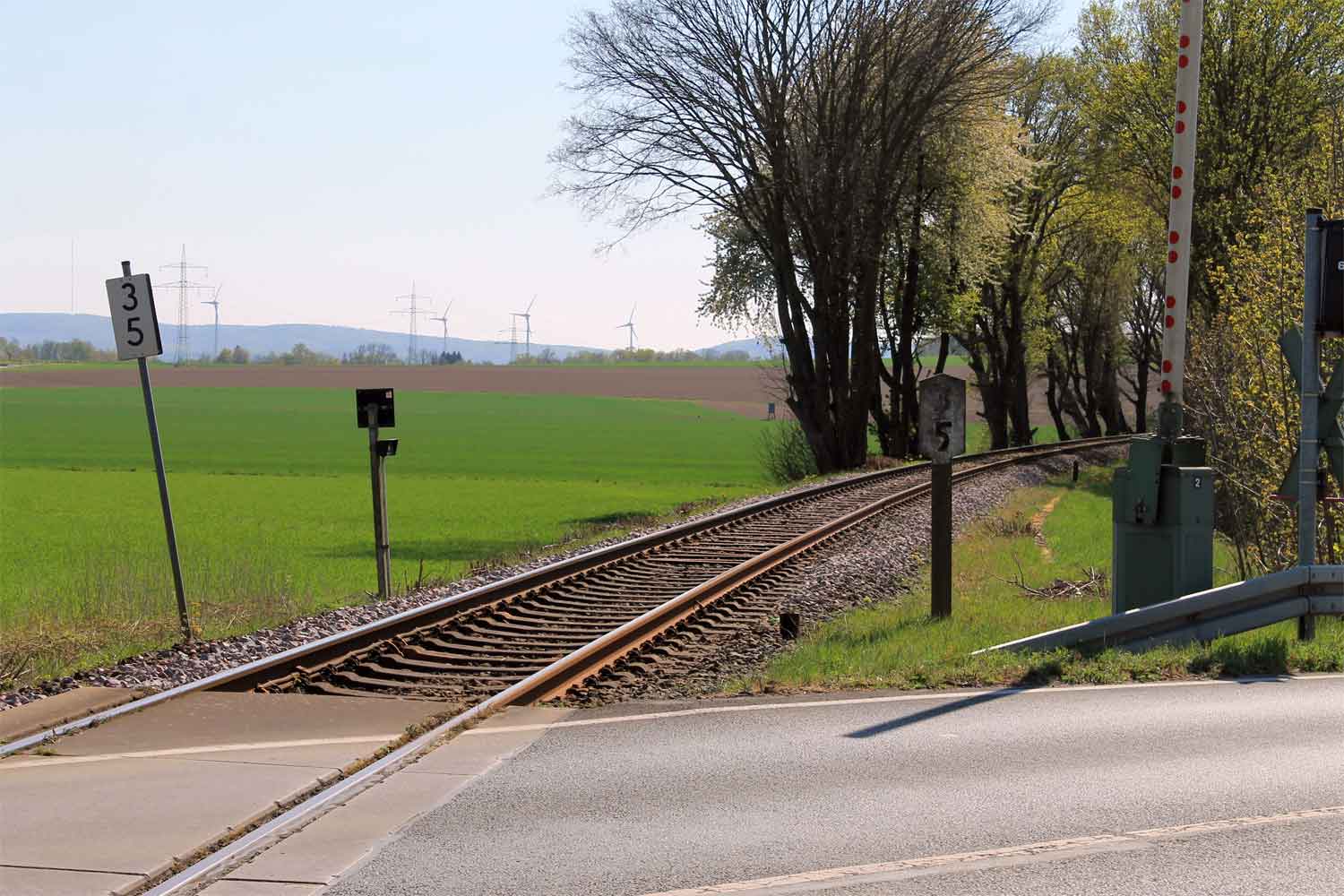 unmittelbar am Stellwerk: etwa km -0,5 der Strecke Lage (Lippe) 0,0 - Bielefeld Hbf 21,77 (2984)
