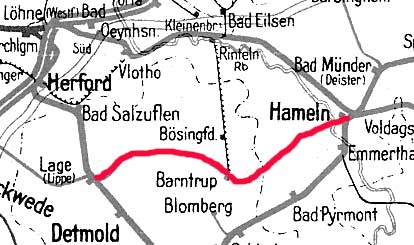 Lage (Lippe) 0,05 - Barntrup 26,43 - Hameln 49,93 (1938/1980)