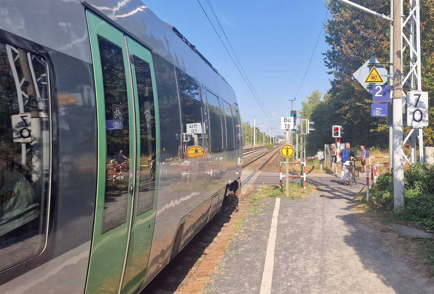 Der Stein am 2. Wagen ist km 80,2 der Strecke