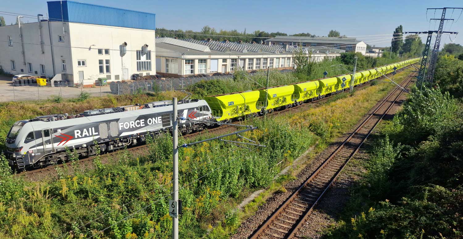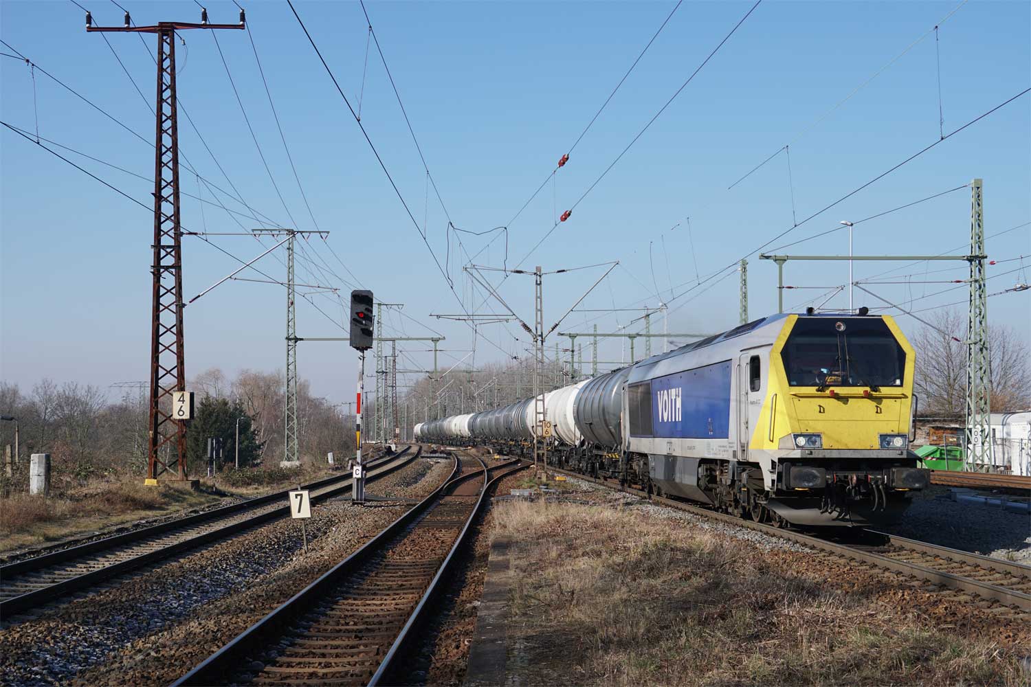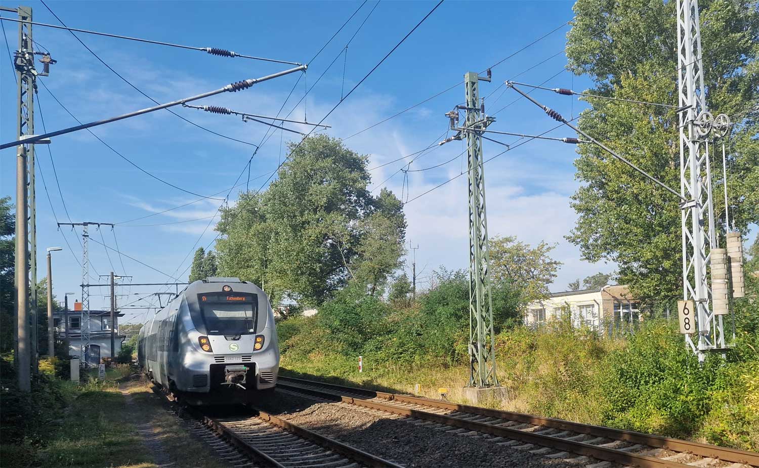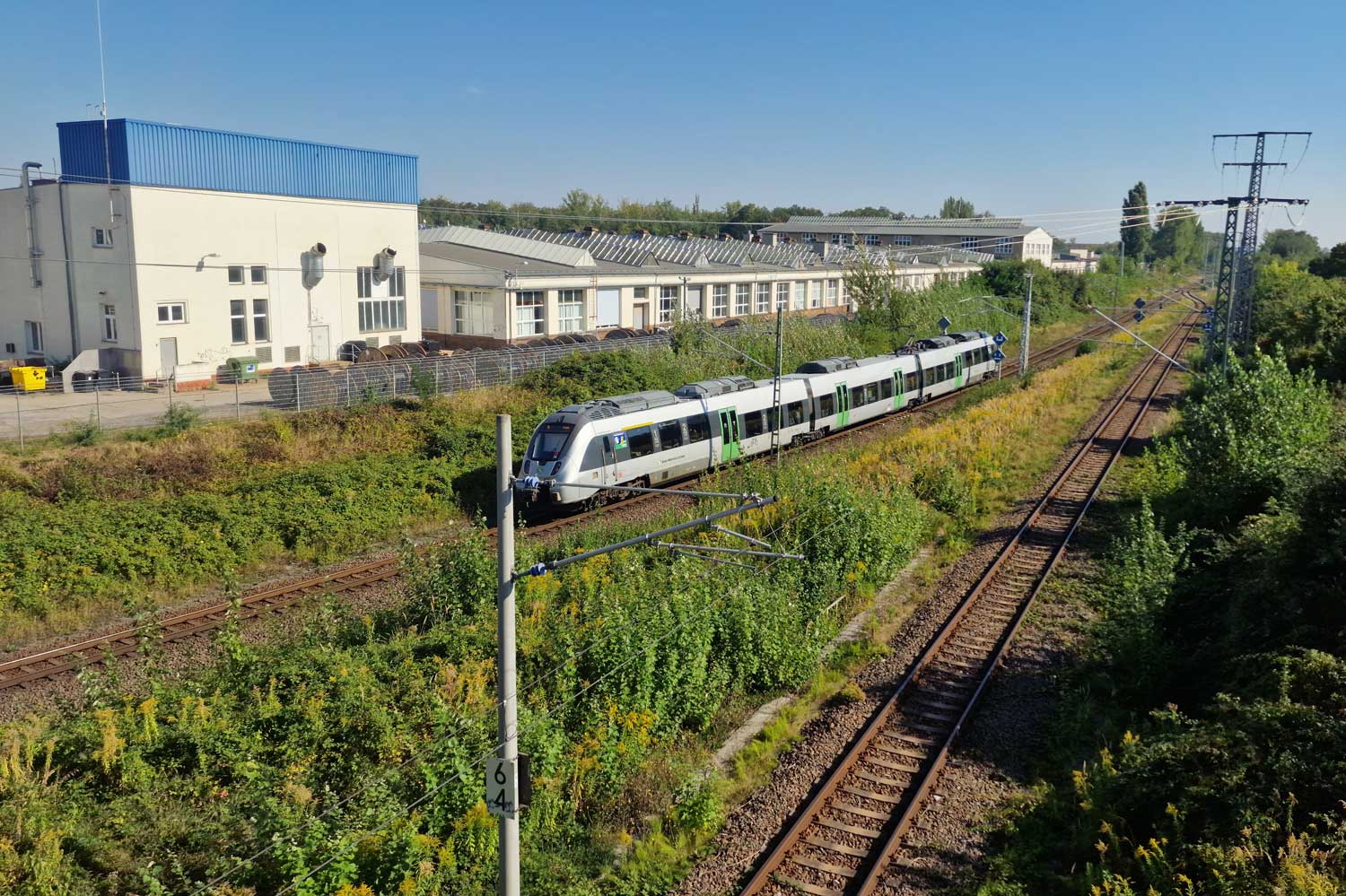 Der Zug befindet auf dem Verbindungsgleis zur Strecke