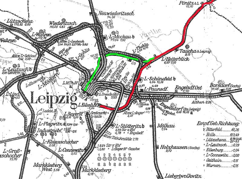 Leipzig Hbf -1,04 - Leipzig-Heiterblick 7,00 - (Eilenburg 23,62) (1943/1967)