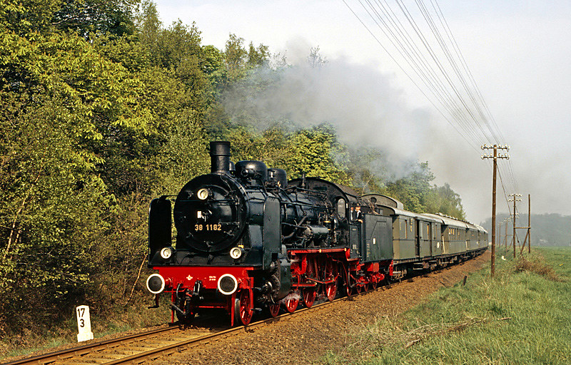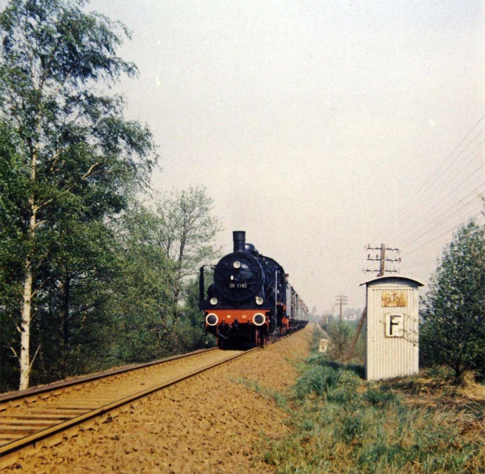 38 1182 mit einem Sonderzug am 02.05.1987 im Bf Belgershain am km 20,0