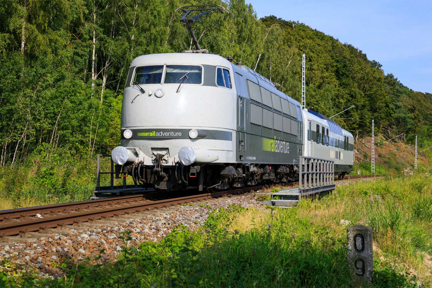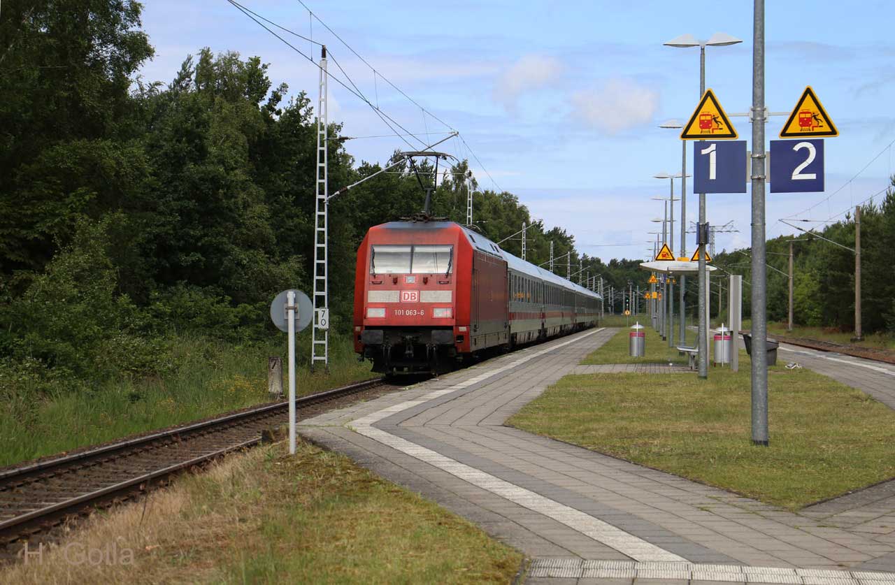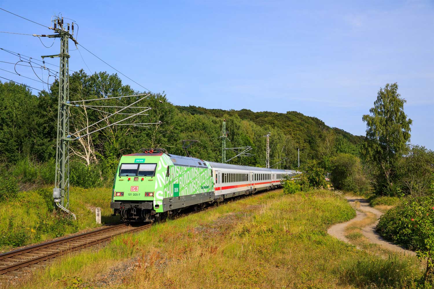 km 7,0 (Stein und Tafel) in Prora - 101 063 schiebt IC 2377