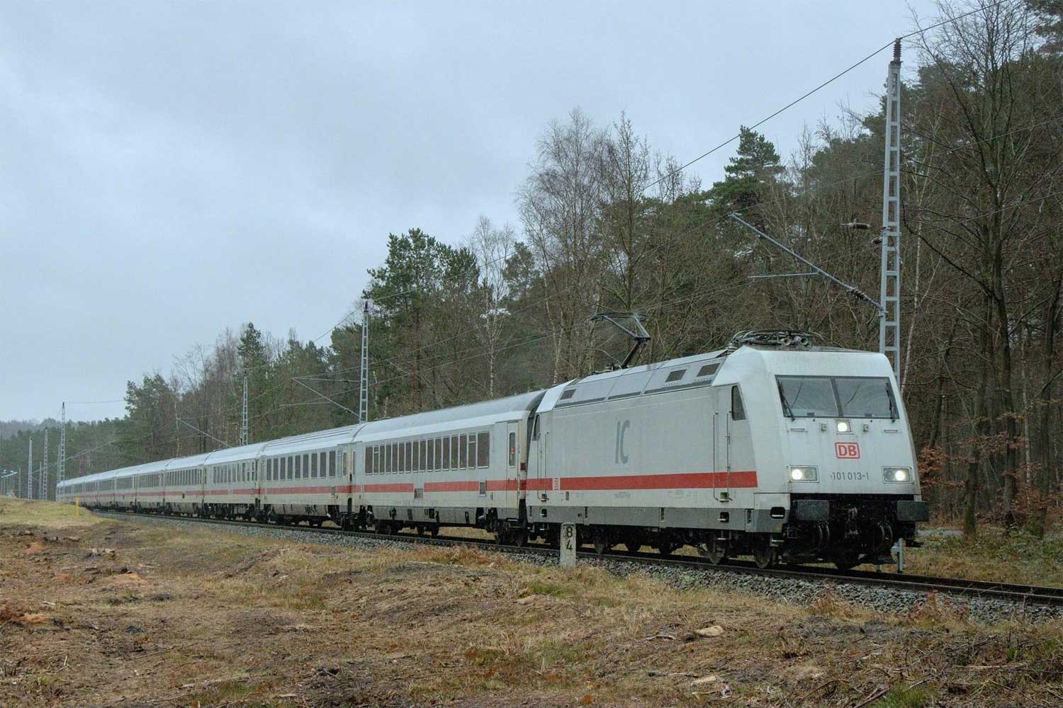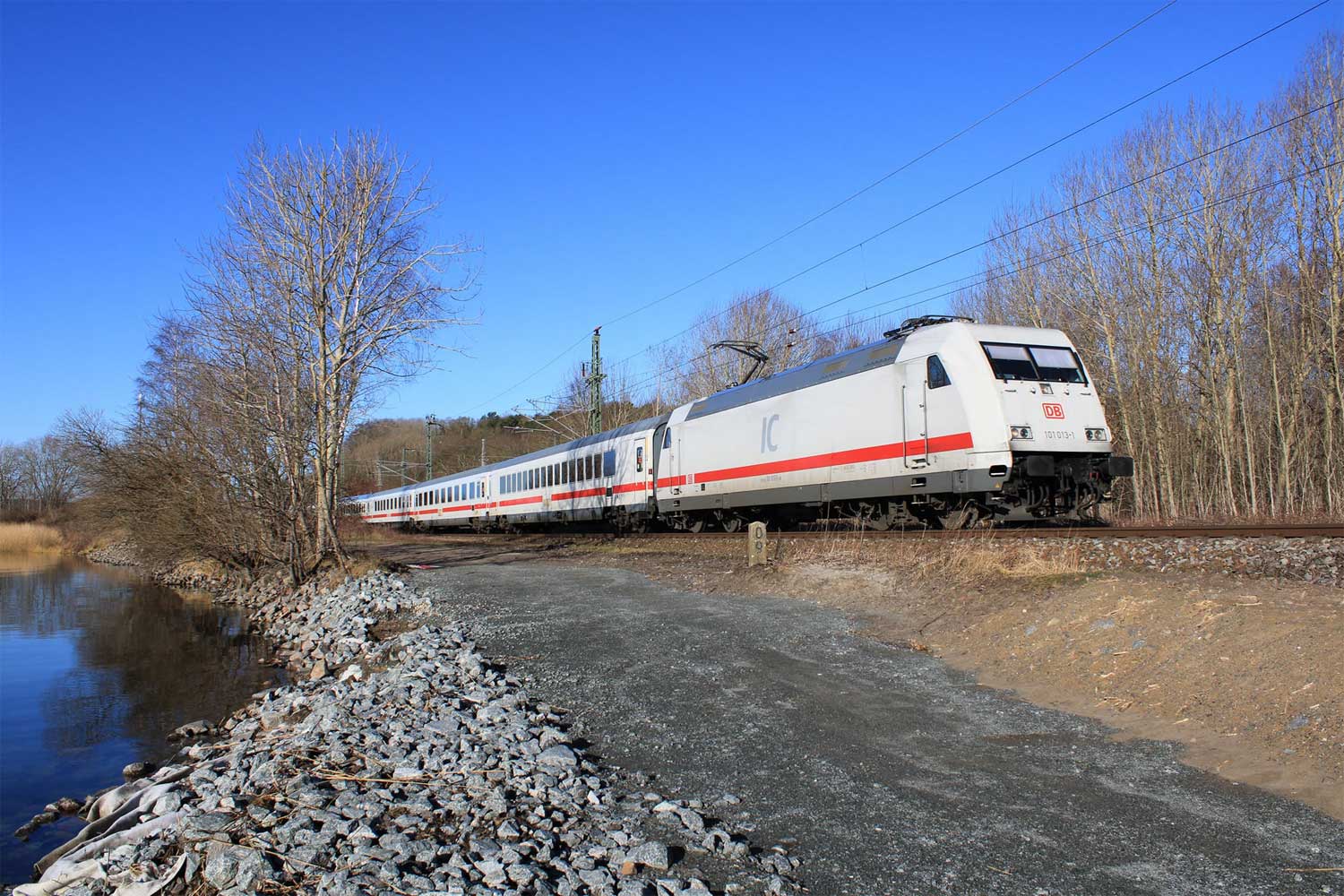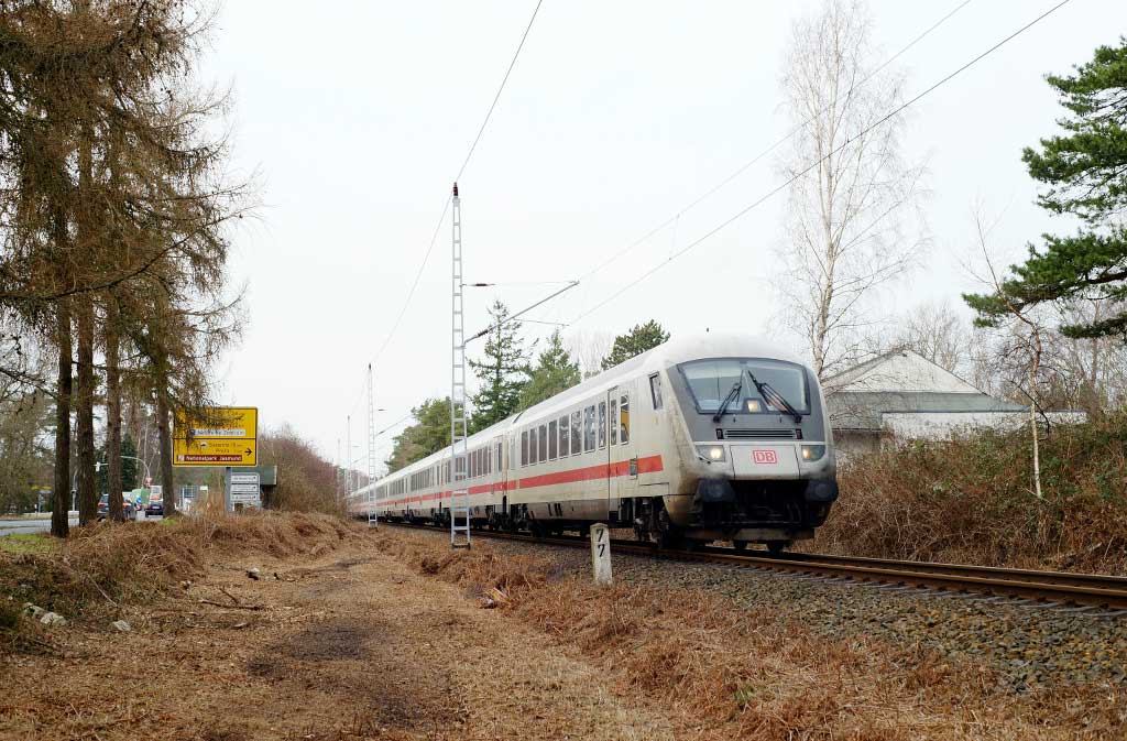 km 7,0 (Stein und Tafel) in Prora - 101 063 schiebt IC 2377