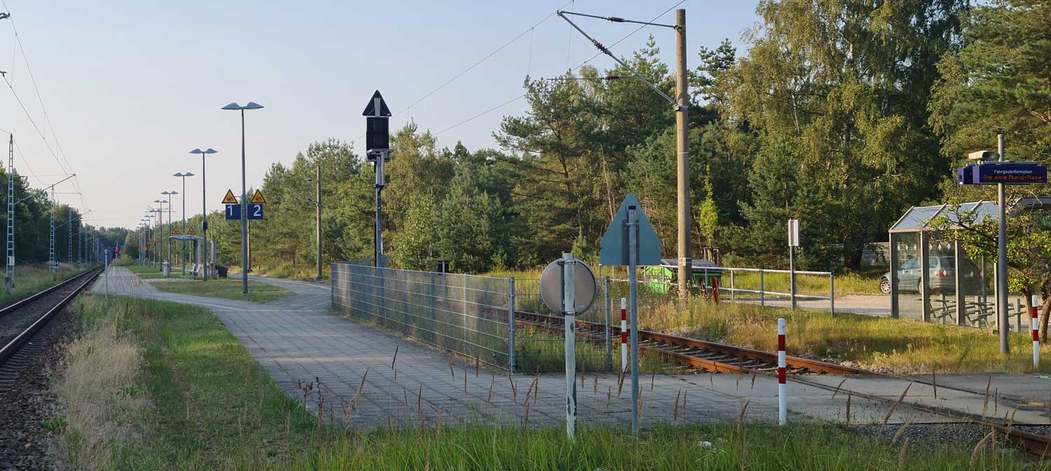 Lietzow (Rügen) | 0,0 | km 261,63 der Strecke Berlin-Gesundbrunnen 0,53 - Berlin-Schönholz 3,85 - Oranienburg 27,41 - Löwenberg (Mark) 44,25 - Neustrelitz 98,53 -Neubrandenburg 133,69 - Stralsund 222,64 - Saßnitz 273,89 (6088/6321) |
