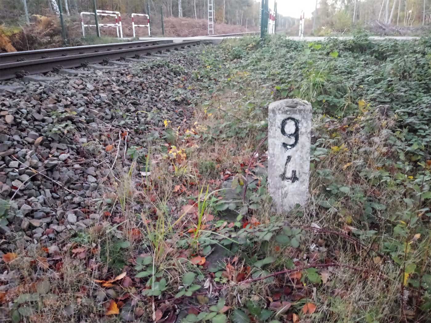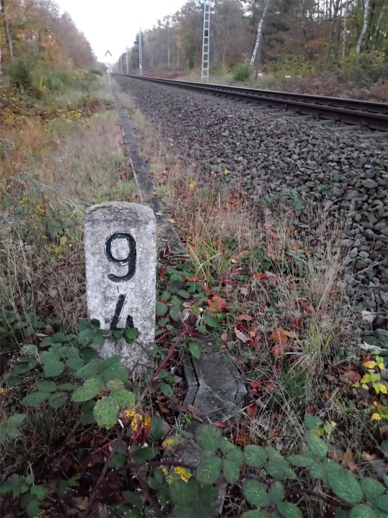 km 11,x (neben dem Oberleitungsmast) in Ostseebad Binz