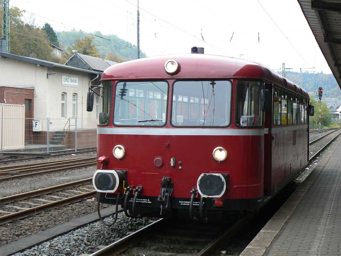 Linz (Rhein) | 0,0 | km 113,30 der Strecke Mülheim (Ruhr)-Speldorf 0,18 - Duisburg-Wedau 5,72 - Düsseldorf-Rath 21,29 - Opladen 48,07 - Köln-Kalk Nord 62,95 - Troisdorf 81,16 Neuwied 135,81 - km 154,66 (vor Niederlahnstein) = [km 125,70 - Frankfurt (Main) Hbf 0,0] |