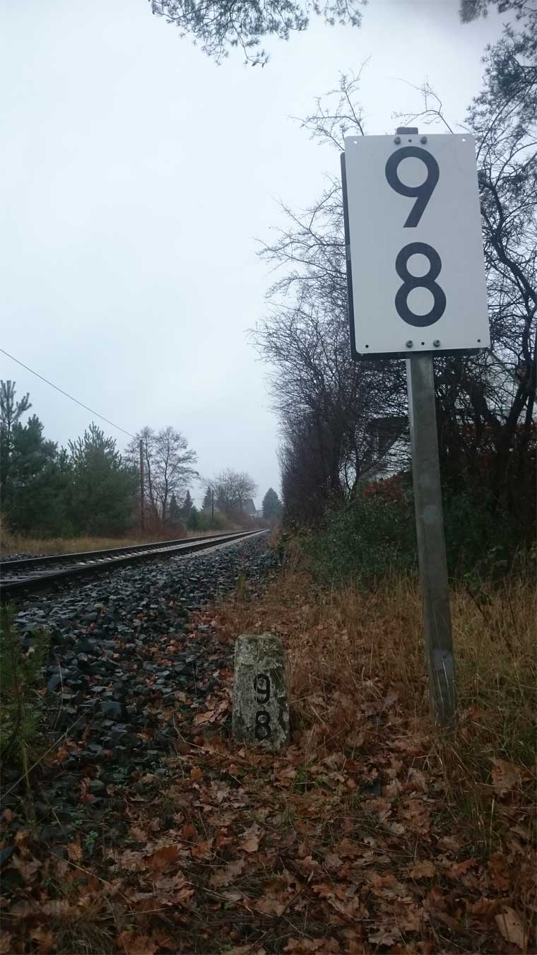 Richtung Lübeck km 8,2 (im Hintergrund) gehört zur Strecke