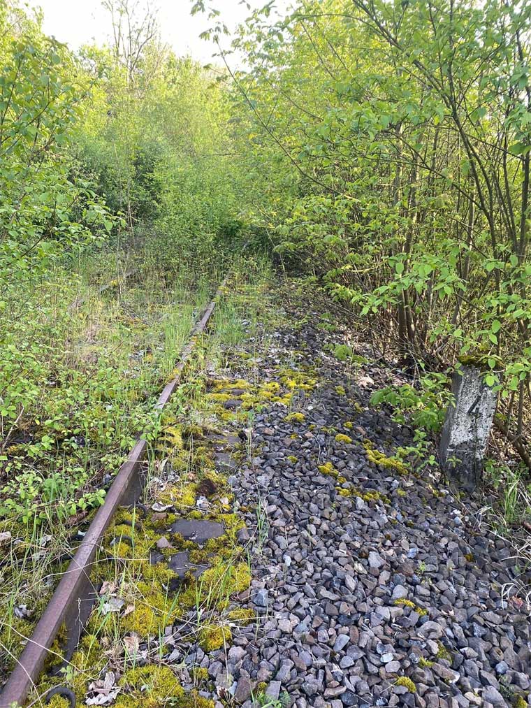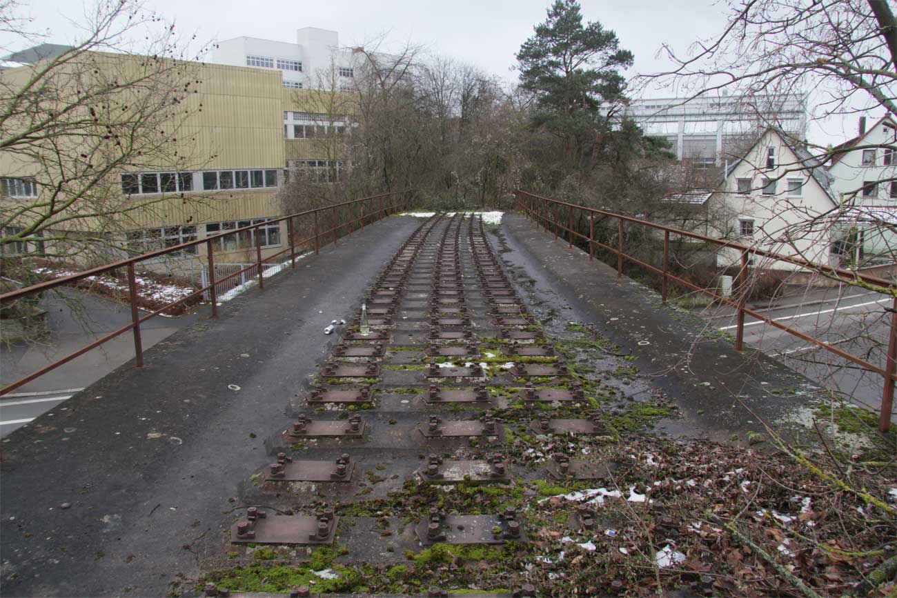 Überreste des Dreischienengleises in Heilbronn auf der Brücke über die Sontheimer Landwehr - Blick Ri Süden