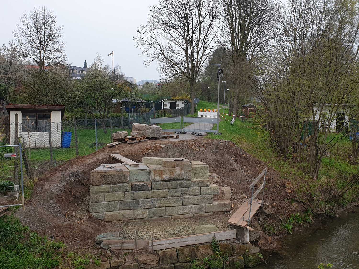 Die Bottwarbrücke in Großbottwar wird gerade restauriert. Dabei wird nach der Aufarbeitung die originale Stahlbrücke wieder eingesetzt werden.