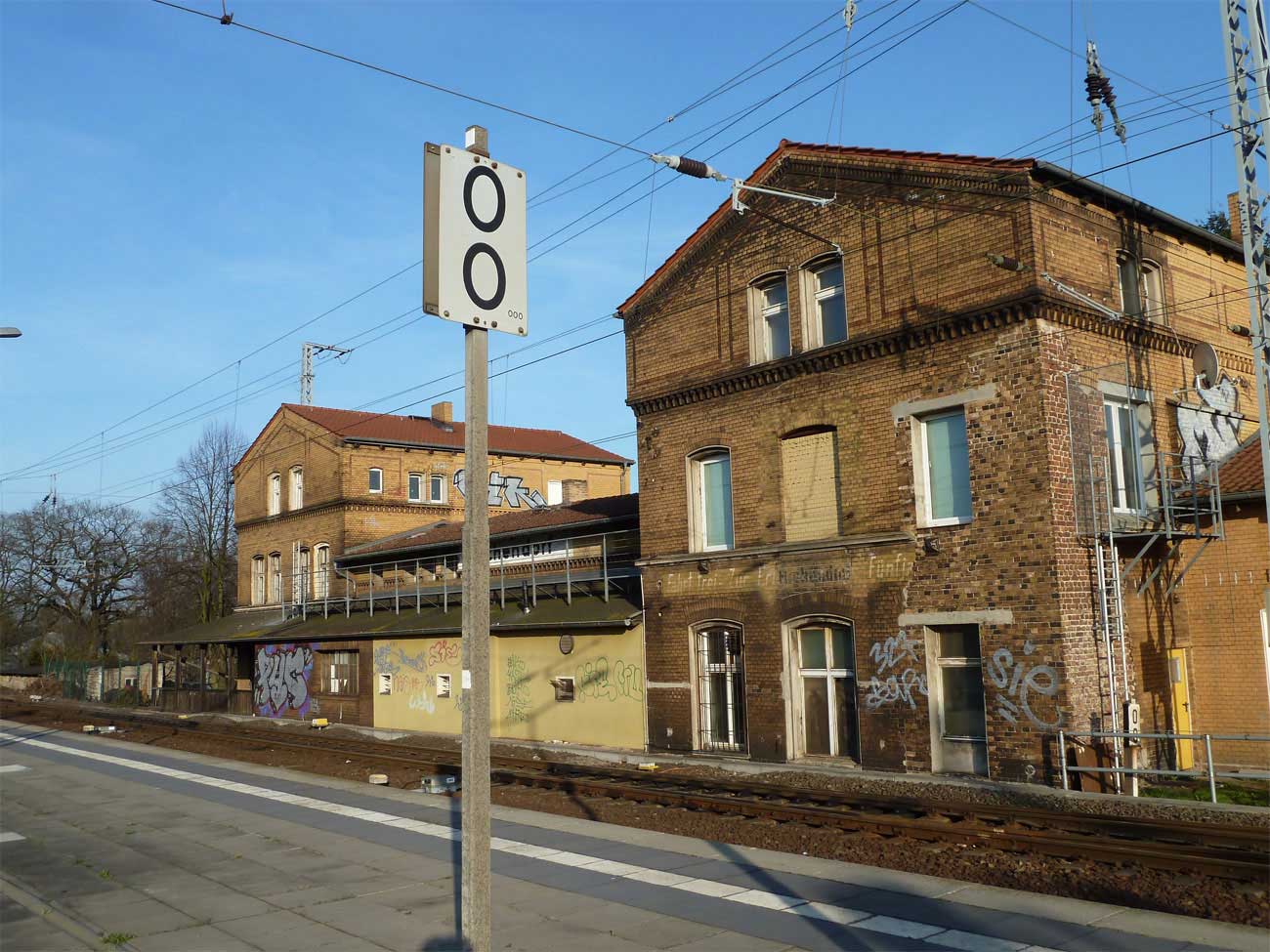 Michendorf | 0,03 | km 28,64 der Strecke Berlin-Charlottenburg 0,0 (später: -0,12) - Wiesenburg (Mark) 77,82 - Streckenunterbrechung - Barby 120,16 - Calbe (Saale) West 130,75 - Streckenunterbrechung -(Güsten 147,34) - Sandersleben (Anh) 163,40 - Blankenheim Trennungsbf 188,09 |