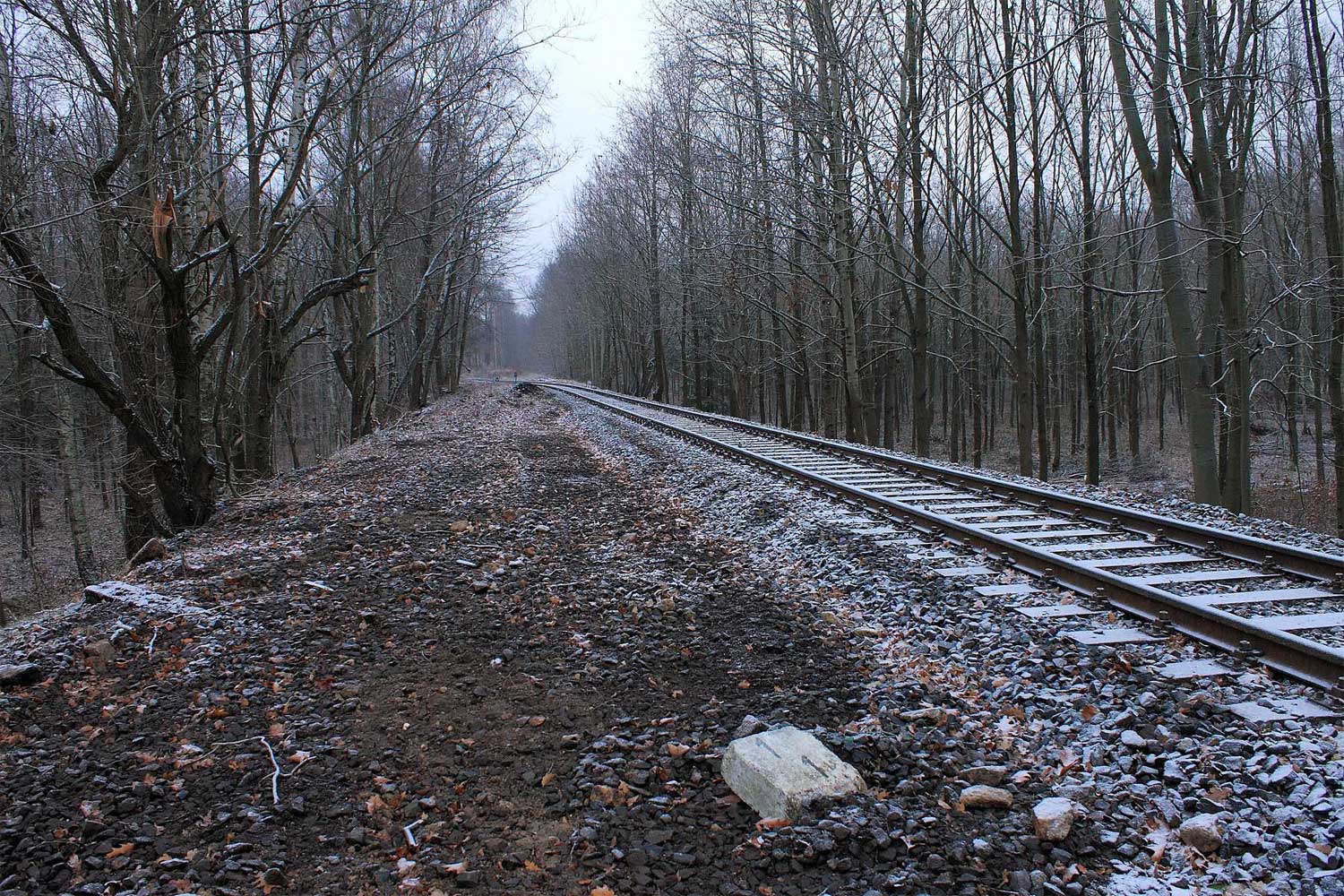 km 26,0 am Abzw Trzciniec Zgorzelecki (Rohnau) - Blick links in Richtung Bogatynia (Reichenau in Sachsen)