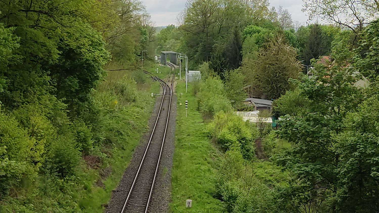 km 25,7 am Abzw Trzciniec Zgorzelecki (Rohnau) - Blick Richtung Bogatynia (Reichenau in Sachsen)