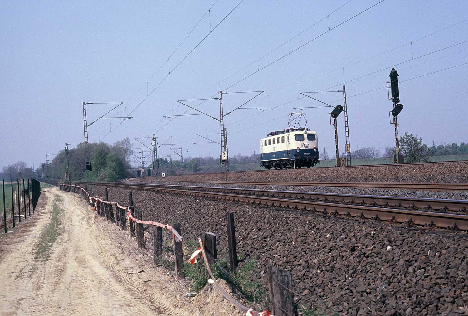 km 2,4 - Blick Richtung Duisburg Hbf Gleise von links nach rechts: Gegenrichtungsgleis der Strecke 2184 Gegenrichtungsgleis der Strecke 2290 Richtungsgleis der Strecke 2290 Richtungsgleis der Strecke 2184 Foto: Wolf-Dietmar Loos, 14.04.1991