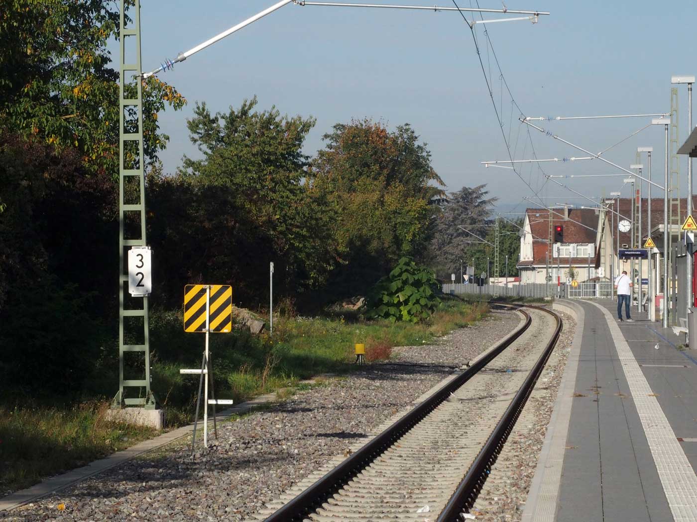 Müllheim (Baden) 0,0 km 237,31 der Strecke von Mannheim Hbf 0,0 - Heidelberg 18,23 - Karlsruhe Pbf 72,63 - Rastatt 95,20 - Offenburg 143,68 - Freiburg (Breisgau) 205,49 - Basel Bad Bf 267,89