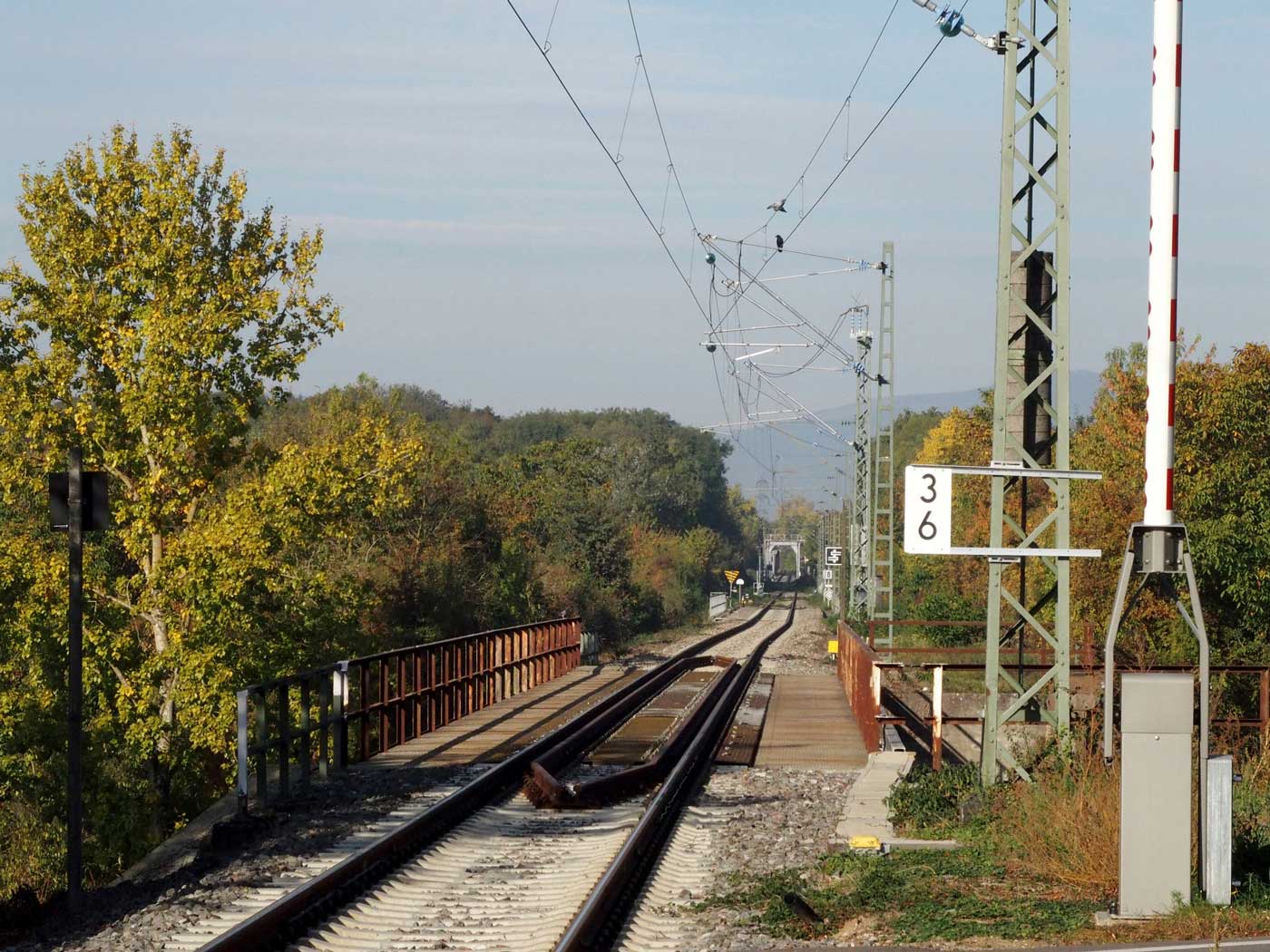 km 3,6 in Neuenburg - Blick Richtung Grenze - Mulhouse-Ville [Mülhausen (Els) Hbf]