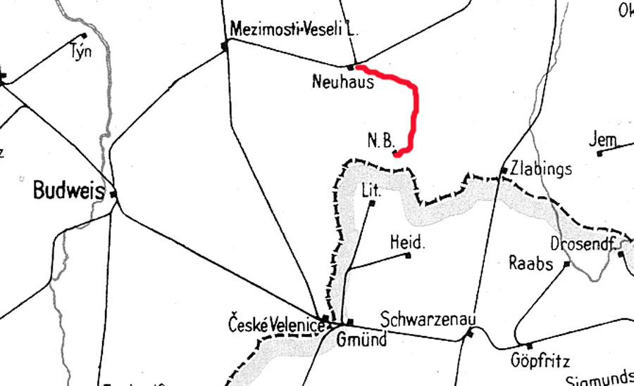 Neuhaus / Jindřichův Hradec 0,0 - Grenze Protektorat Böhmen und Mähren/Niederdonau 4,2 - Neubistritz 32,869