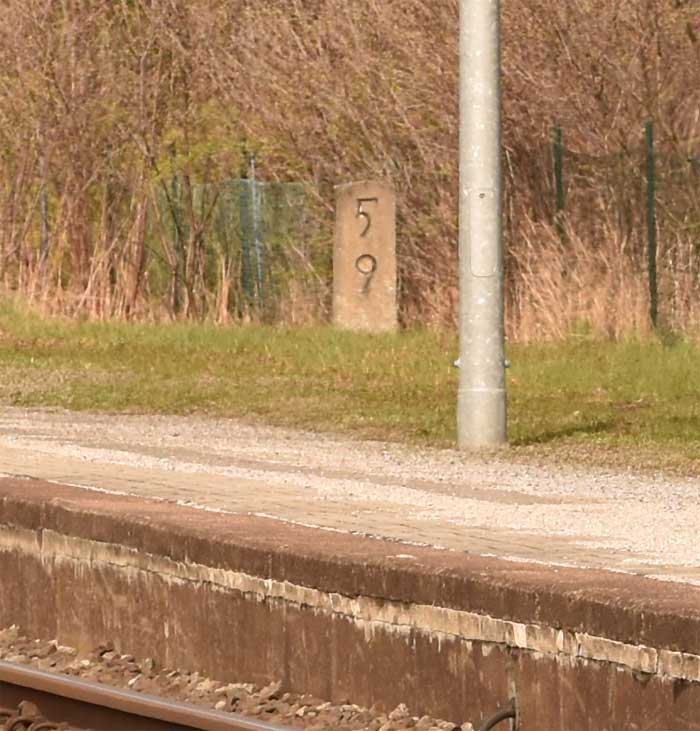km 23,5 (hinter dem Triebwagen versteckt) gehört zur Strecke