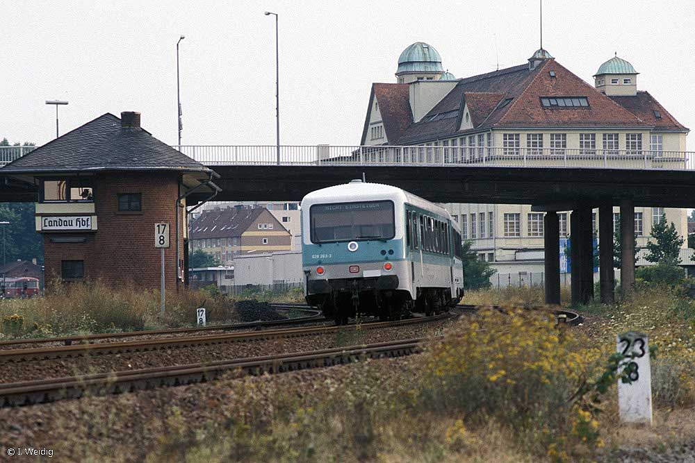 | km 22,8 der Strecke Neustadt Hbf 0,0 - Edenkoben 10,7 - Landau Hbf 22,8 (Pfälzer Oberlandbahn) Spurweite 1000 mm | ||
