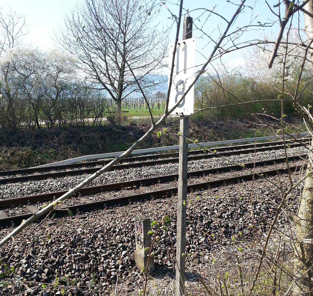 km 0,8 (rechts) gehört zur Strecke Landau (Pfalz) Hbf 0,0 - Herxheim (b Landau) 10,88