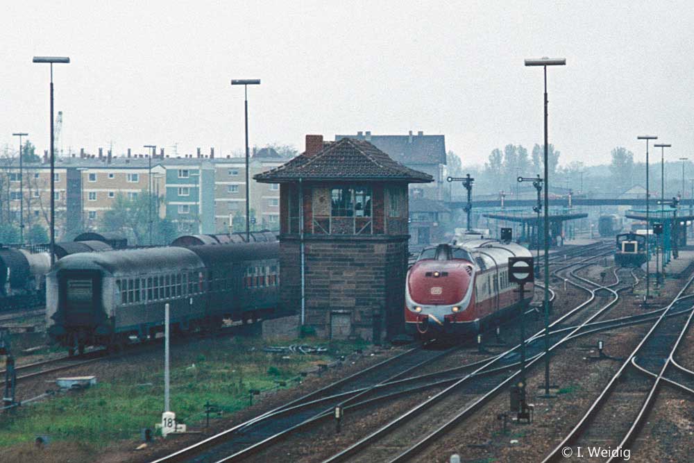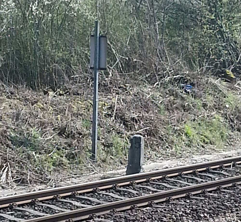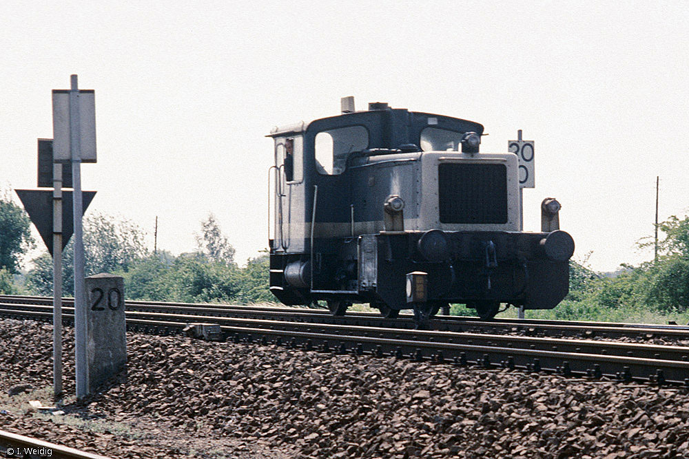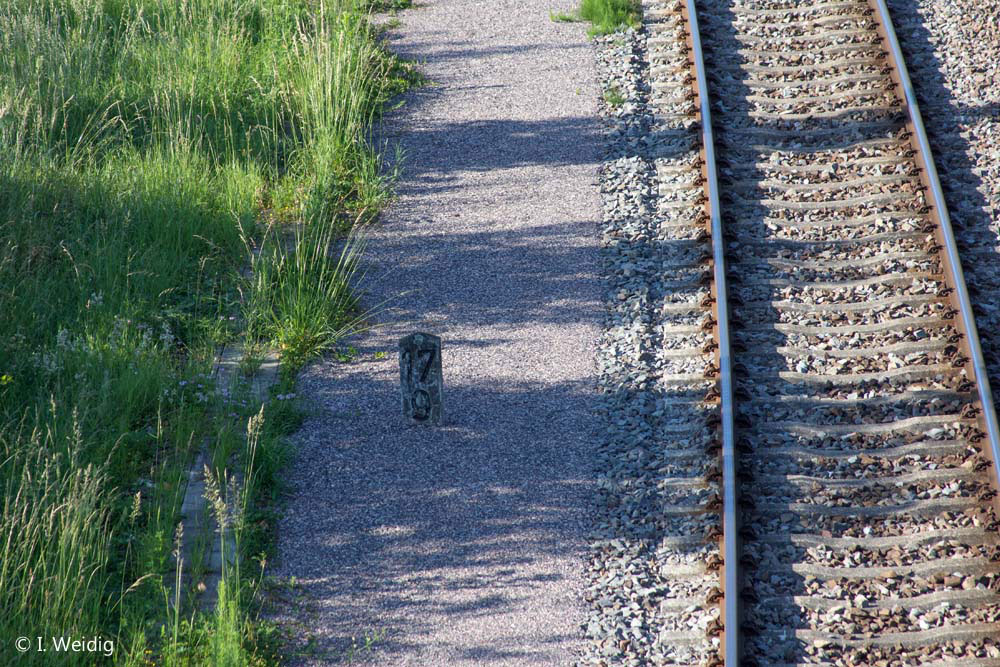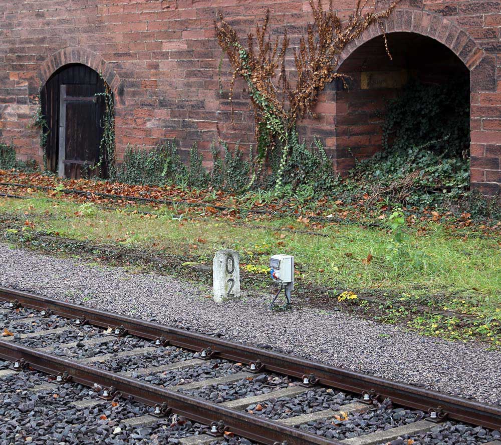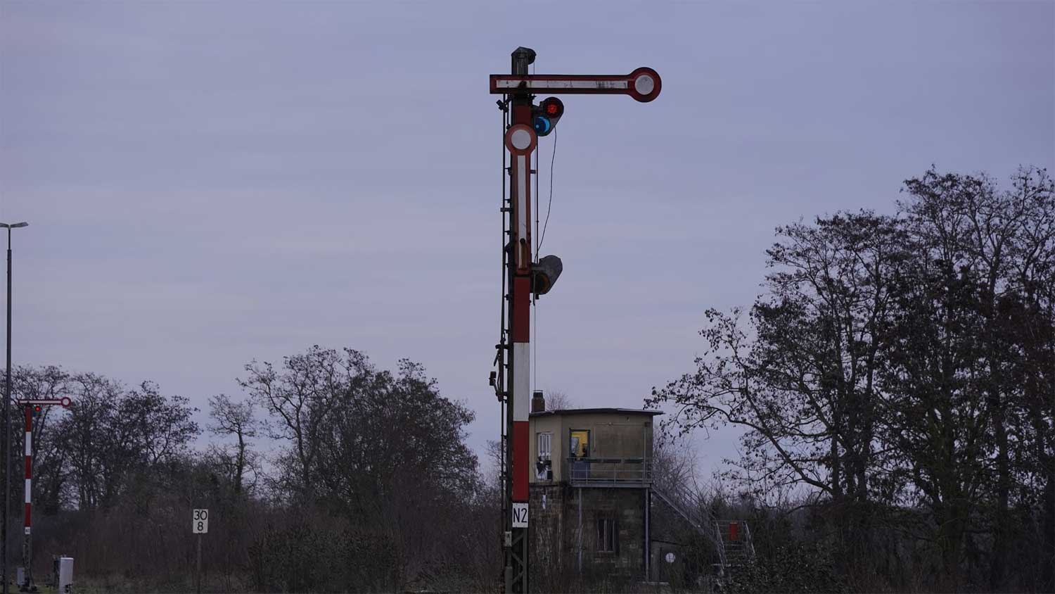 Er stand vor dem ehemaligen Wärterstellwerk in der Rangieranlage.
