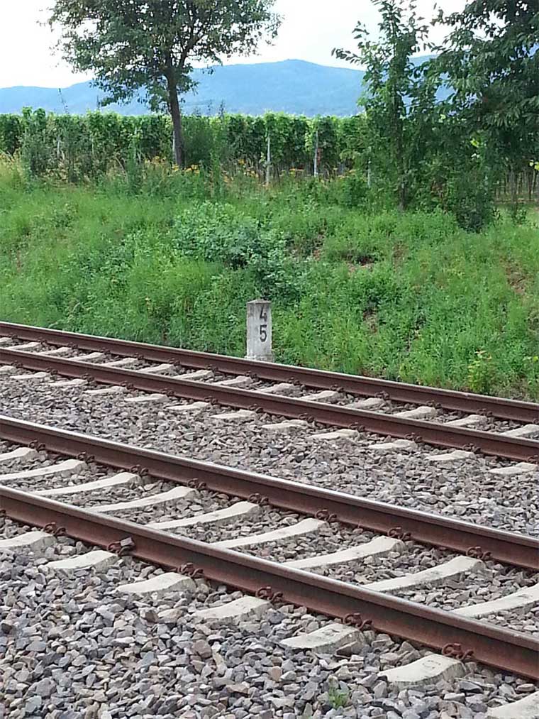 | km -1,16 der Strecke Neustadt (Weinstr) Hbf -1,16 - Bad Dürkheim 13,51 - Grünstadt 28,45 - Monsheim 38,04 | ||