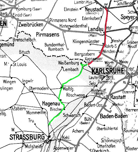 Neustadt (Weinstr) Hbf 0,02 - Landau (Pfalz) Hbf 18,43 - Kapsweyer 41,17 - Staatsgrenze Deutschland/Frankreich 44,618 = (km 60,028 - Wissembourg 57,67 - Vendenheim 0,0)