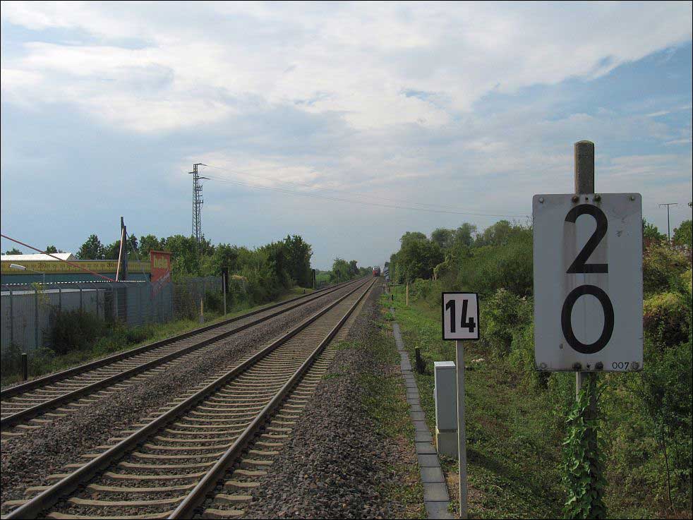 km 1,4 gehört zur Strecke Landau (Pfalz) Hbf 0,0 - Herxheim (b Landau) 10,88