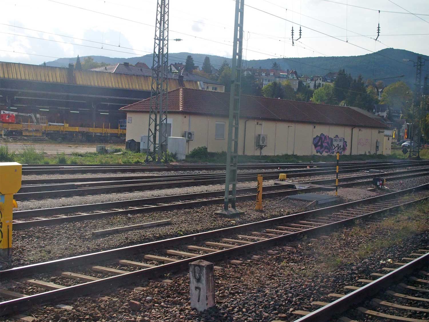 | km -1,77 der Strecke Neustadt (Weinstr) Hbf -1,77 - Bad Dürkheim 13,52 (kommend)/13,51 (gehend) - Grünstadt 28,45 - Monsheim 38,04 (3436/3430) | ||