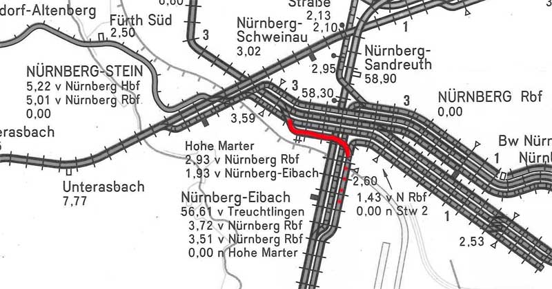 Nürnberg-Eibach 0,0 - Abzw Kanalbrücke 1,04 - Abzw Hohe Marter 1,93