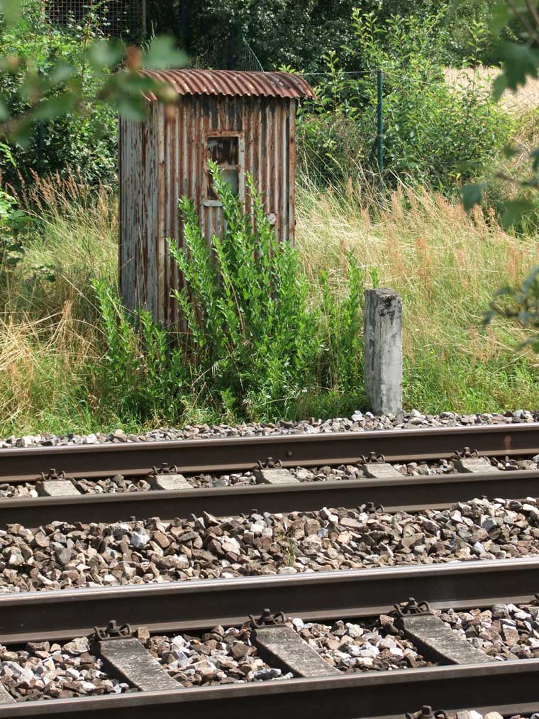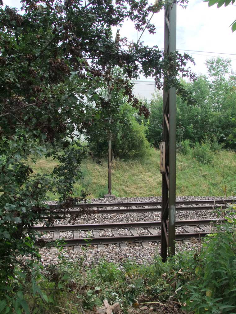 Rechts ein Bahnhofsgleis, früher die Strecke
