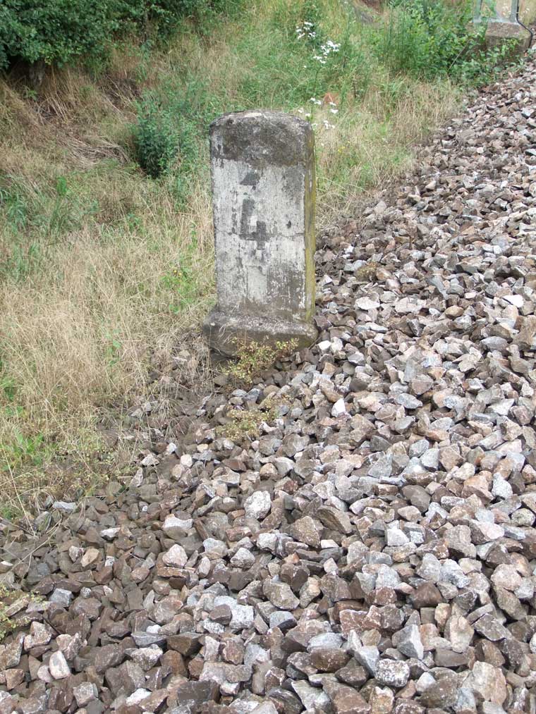 km 3,5 (Stein versteckt) und km 3,6 (Tafel) zwischen Nürnberg Rbf und Nürnberg Großmarkt