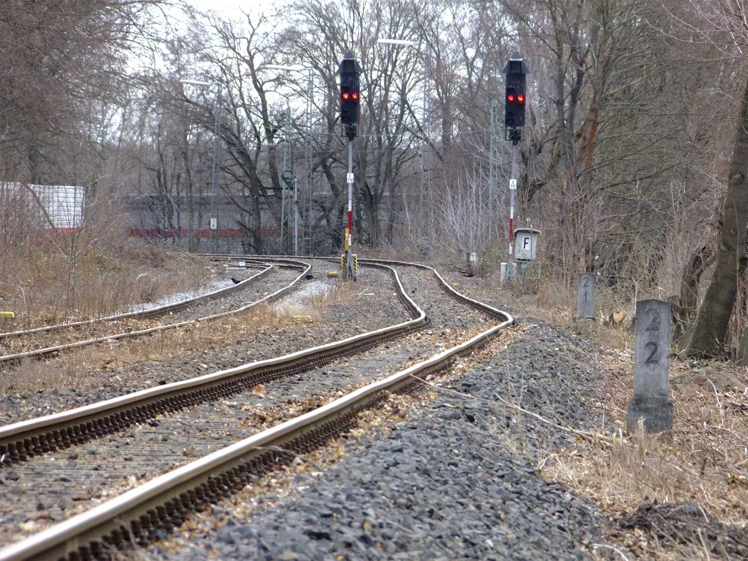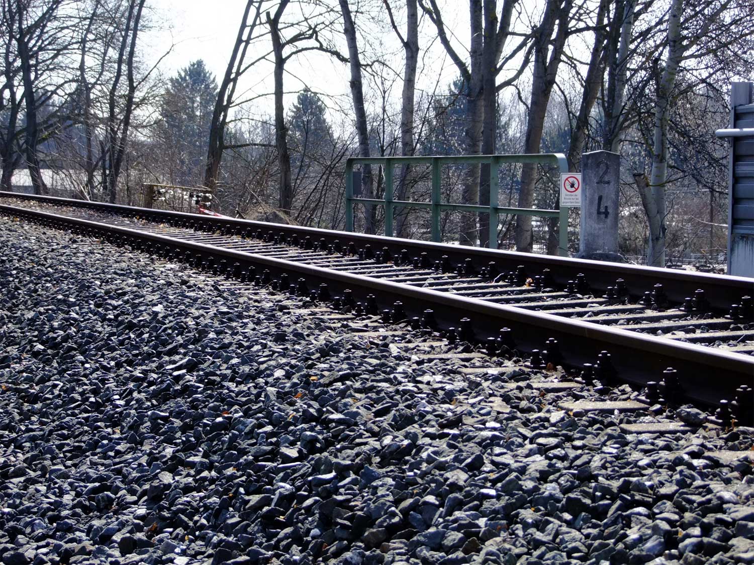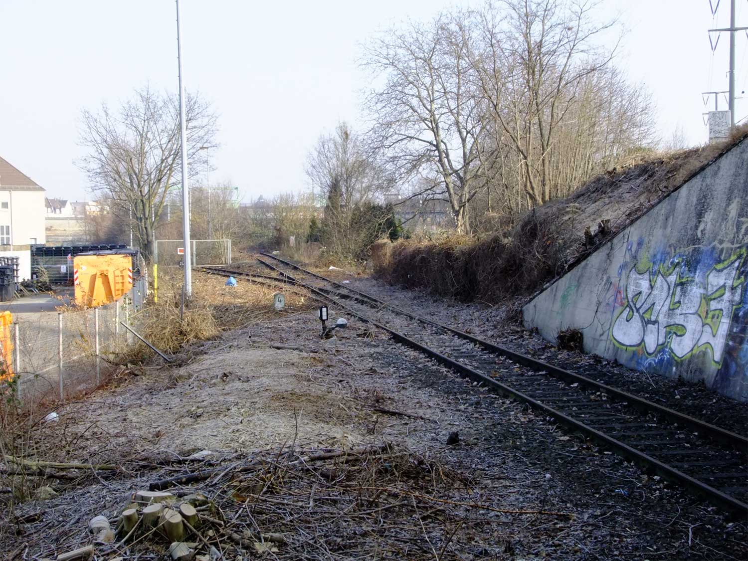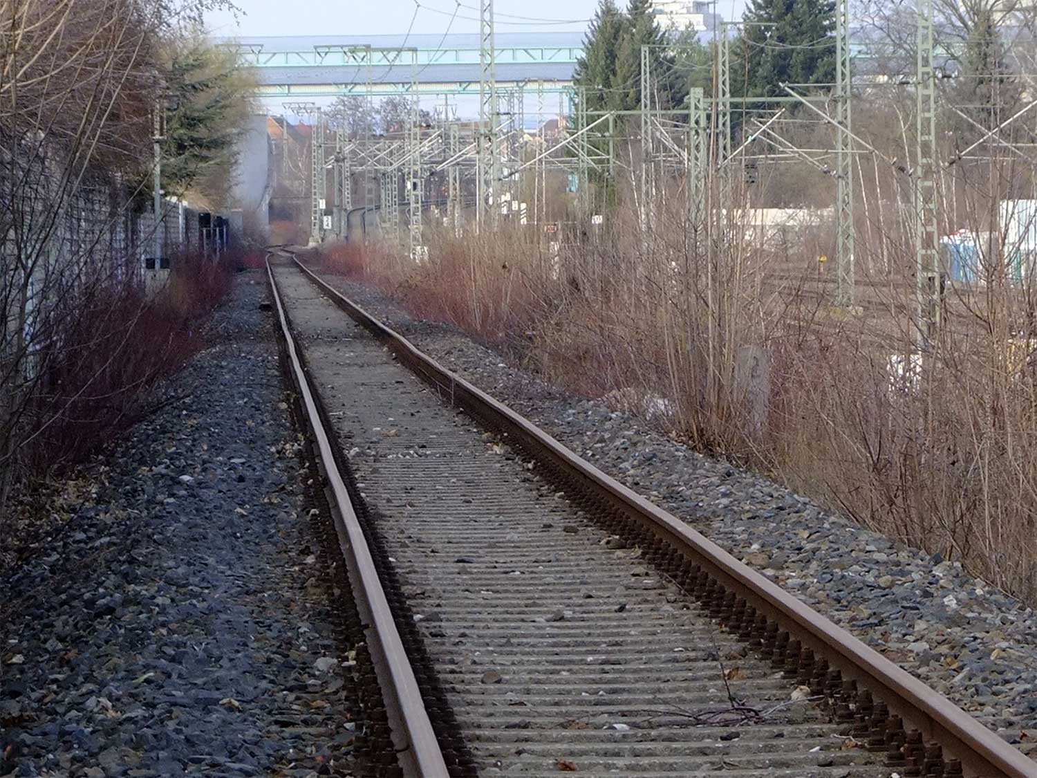 Links das Gleis der Strecke Nürnberg Rbf 0,0 - Heizkraftwerk Sandreuth (Glan)