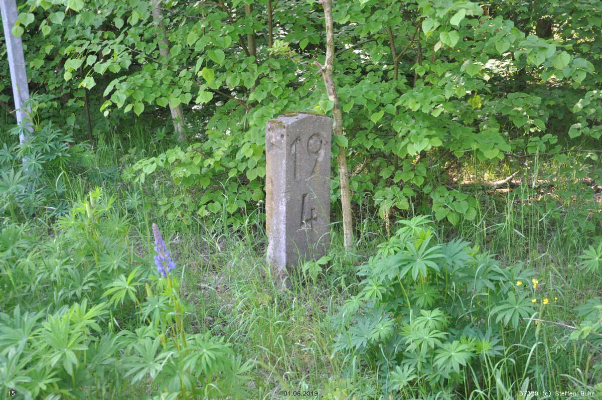 km 7,7 (Stein) und km 7,8 (Tafel) zwischen Eibau und Neugersdorf - Blick Richtung Wilthen