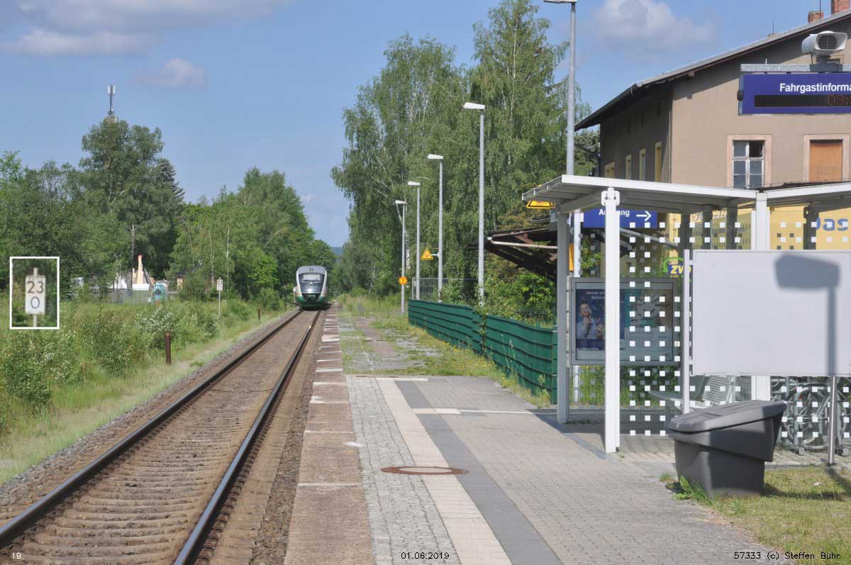 Wilthen 33,38 km 13,99 der Strecke Bautzen -0,36 - Wilthen 13,99 - Neukirch (Laus) West 23,37 - Neustadt (Sa) 36,22 - Sebnitz (Sa) 48,77 - Bad Schandau 64,19 (BS)