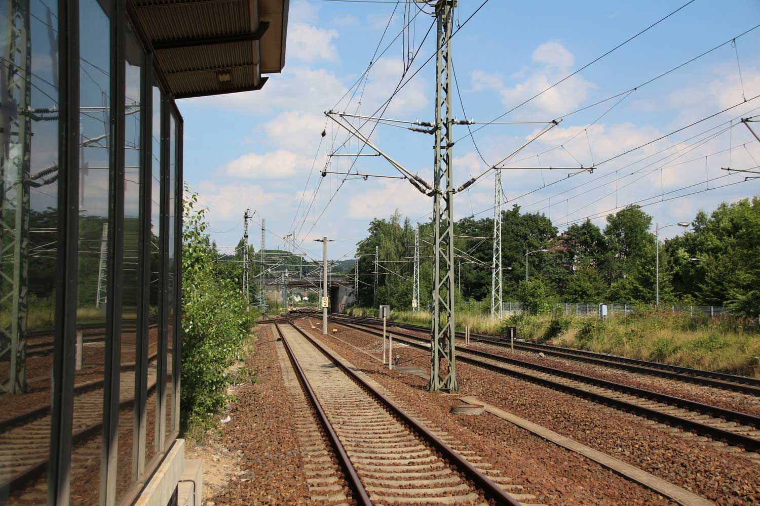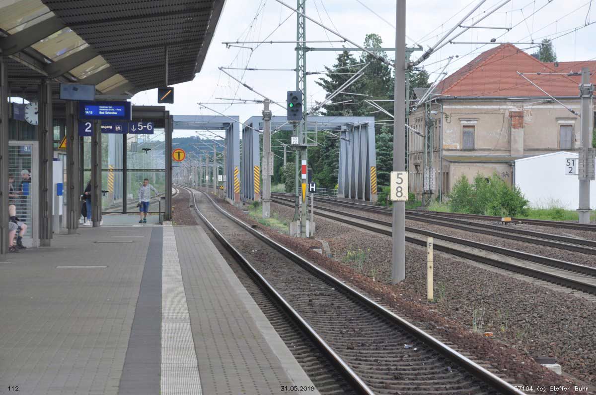 km 45,44 der Strecke Děčín hl. n. (Bodenbach) 0,548 - Grenze Tschechien/Deutschland 11,860 - Schöna 13,89 - Pirna 45,44 - Dresden Hbf 62,49 - Dresden Neustadt 66,33 (6240)