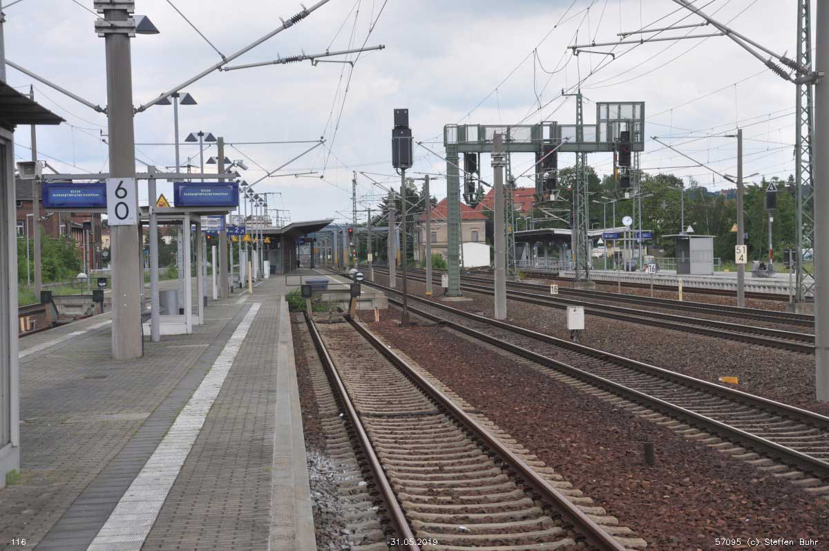 Dresden-Neustadt 20,89 km 115,94 der Strecke Leipzig Hbf 0,15 - Riesa 65,87 - Coswig (b Dresden) 101,93 - Dresden-Neustadt 115,94 (6363)