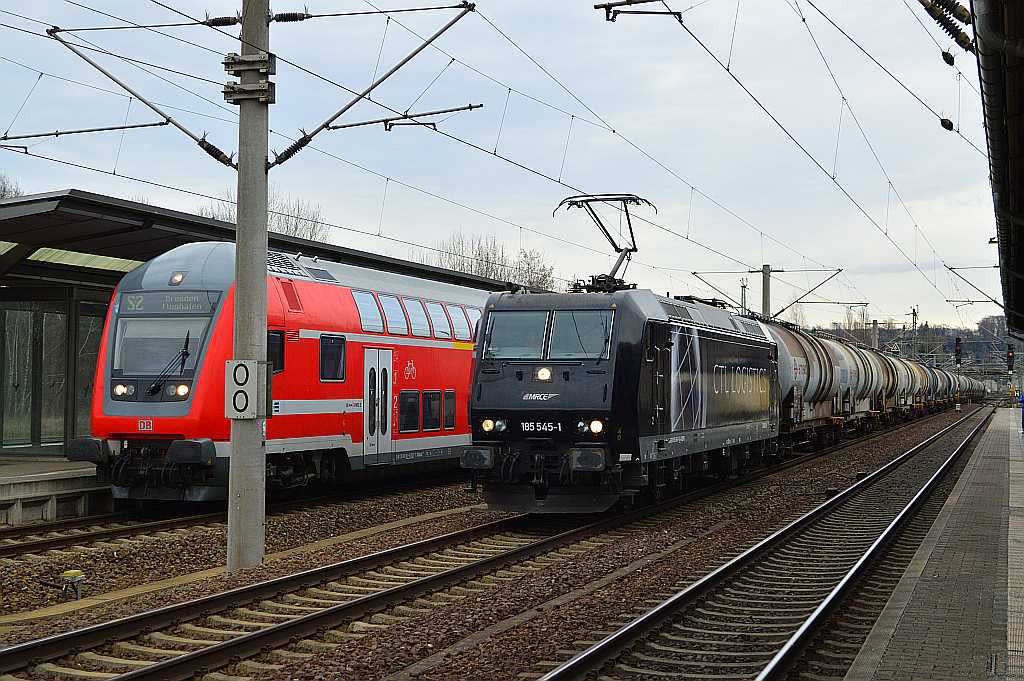 km 0,0 in Pirna - S-Bahn und 185 545