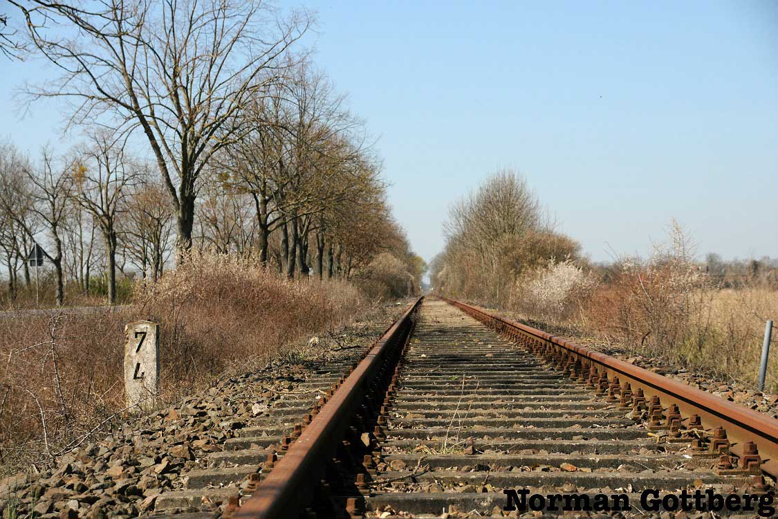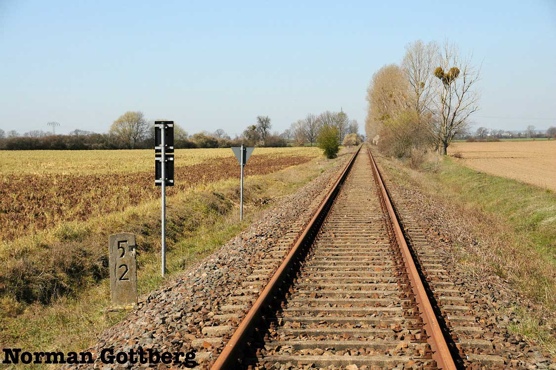 etwa bei km 0,0 (linkes Gleis) in Pratau - Blick Richtung Torgau