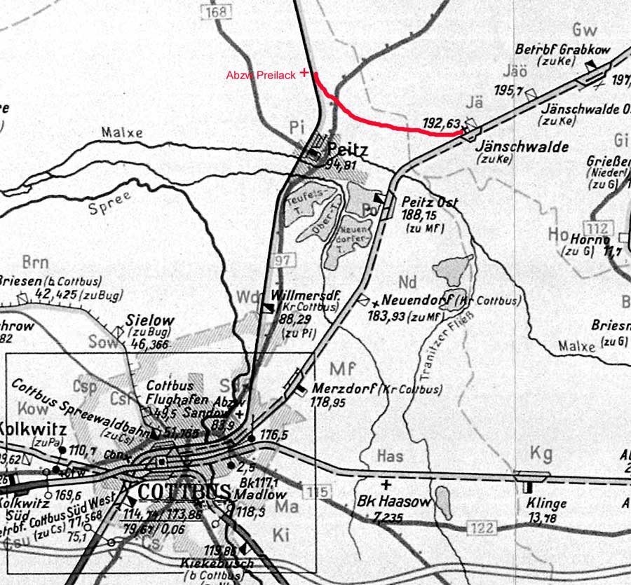 Abzw Preilack, W 1, km 0,0 - Jänschwalde, W 2, km 5,799 (6572)